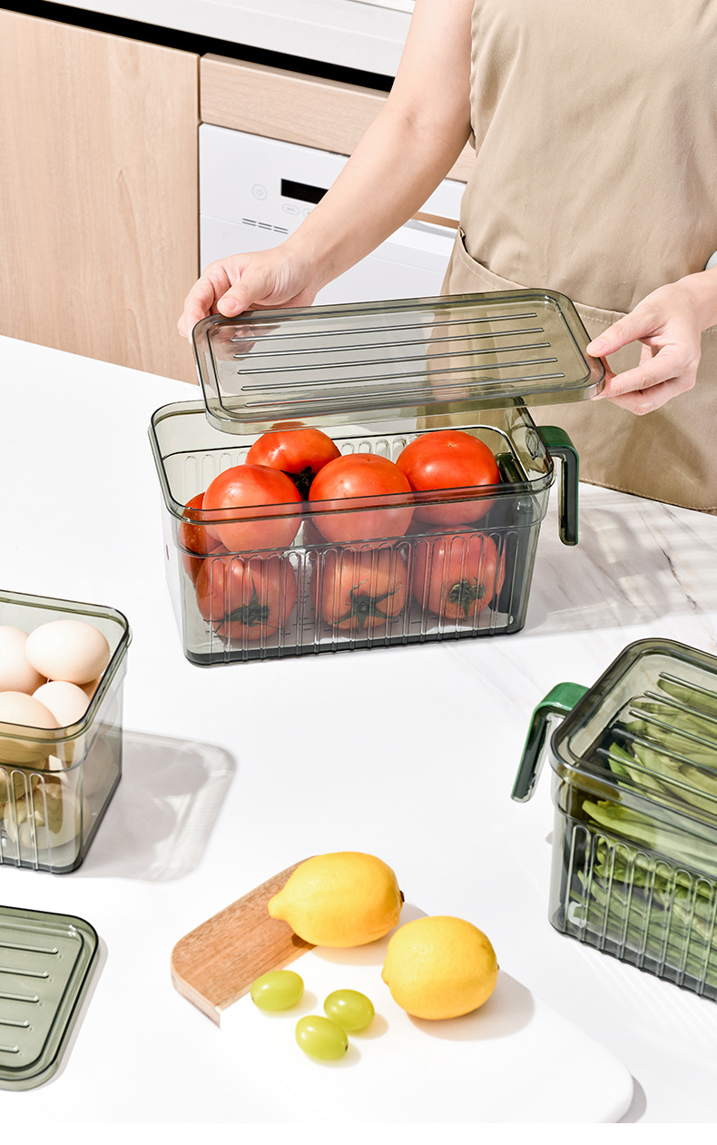 냉장고 보관함 주방 특수 식품 등급 투명 플라스틱 보관함 손잡이 보관 상자 마감 유물