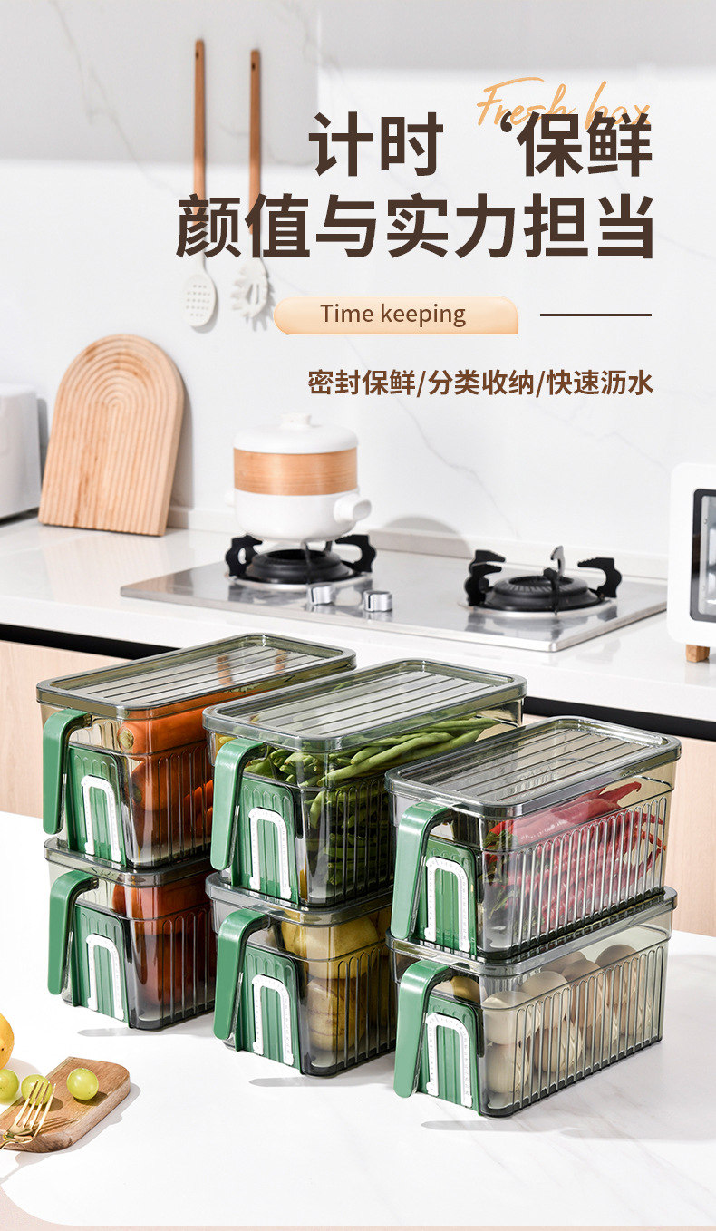 냉장고 보관함 주방 특수 식품 등급 투명 플라스틱 보관함 손잡이 보관 상자 마감 유물스토어 가기