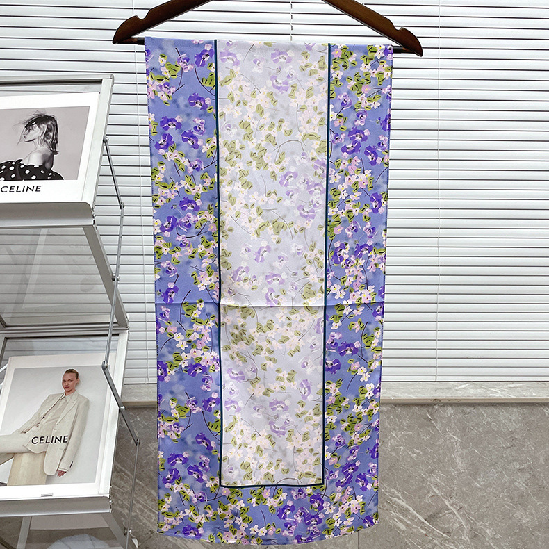 로맨틱 프랑스 퍼플 꽃 실크 크레이프 드 신 스카프 여성의 모든 경기 경량 얇은 봄과 여름 자외선 차단제 숄 도매