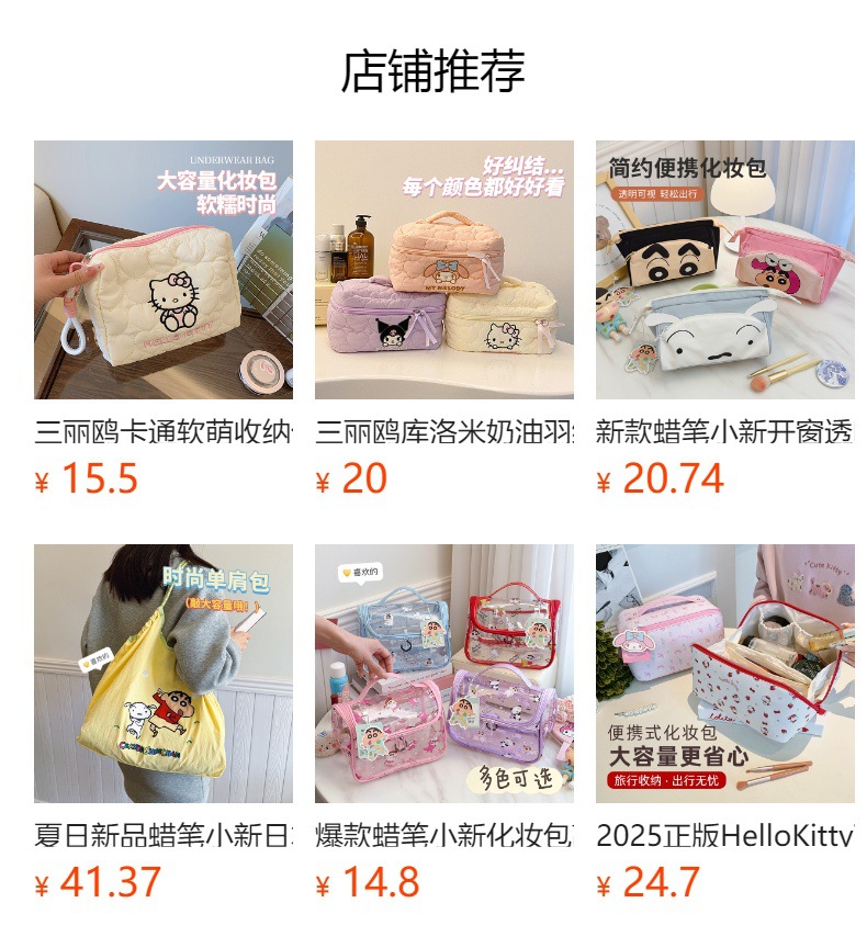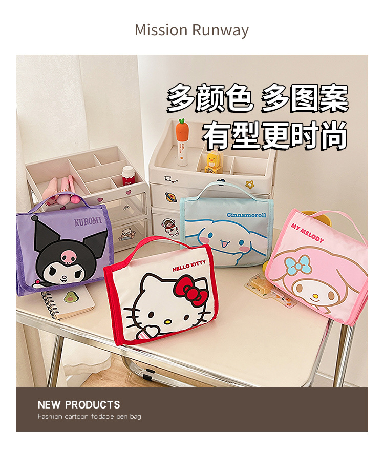 산리오 대용량 높은 가치 접히는 만화 화장품 가방 귀여운 여행 휴대용 화장품 보관 가방스토어 가기