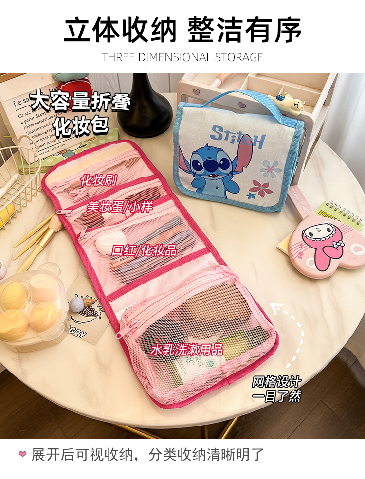 산리오 대용량 높은 가치 접히는 만화 화장품 가방 귀여운 여행 휴대용 화장품 보관 가방
