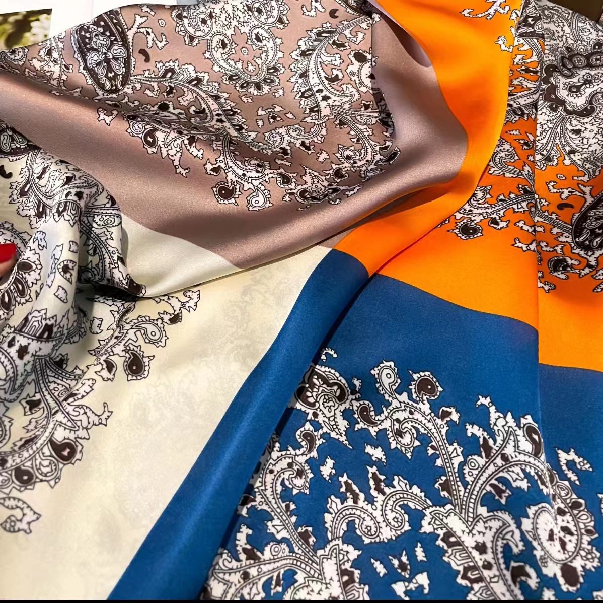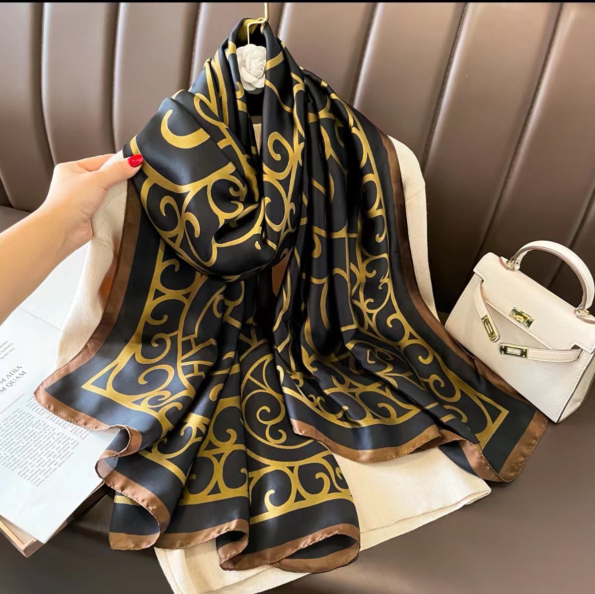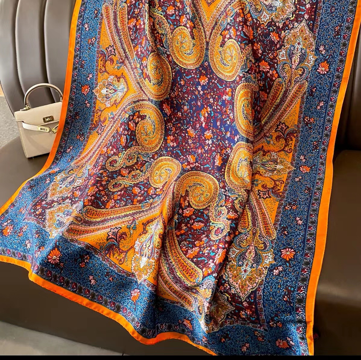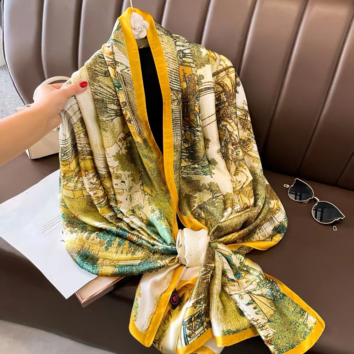 2023 플라워 롱 스카프 시뮬레이션 실크 스카프 여성용 인쇄 새로운 실크 새틴 비치 스카프 에스닉 대형 숄 스카프