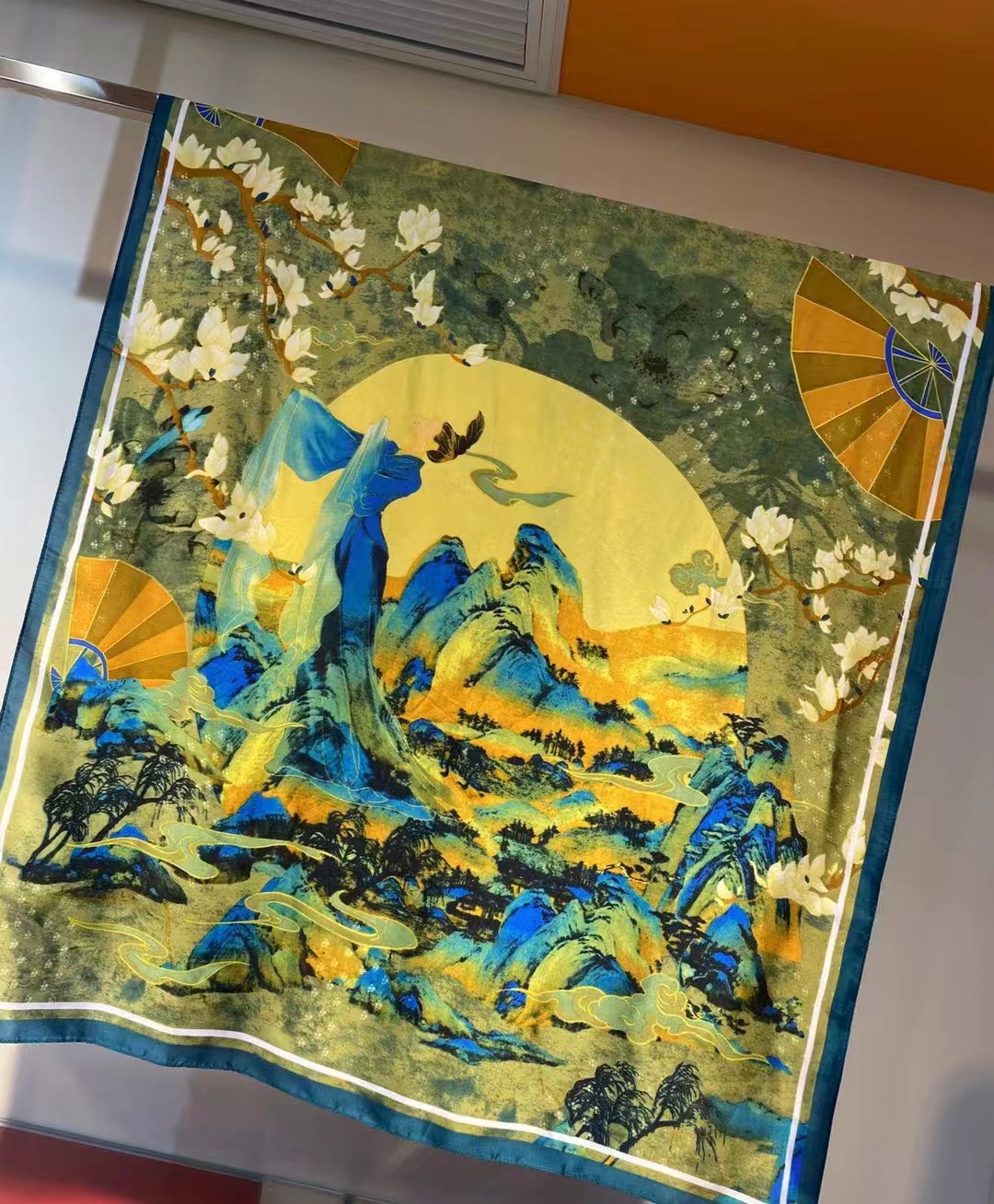 2023 플라워 롱 스카프 시뮬레이션 실크 스카프 여성용 인쇄 새로운 실크 새틴 비치 스카프 에스닉 대형 숄 스카프스토어 가기