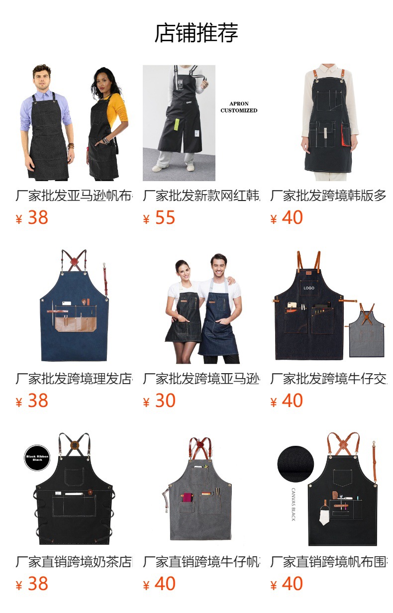 공장 직판 크로스보더 앞치마 맞춤 로고 데님 한국 스타일 남녀 공용 레스토랑 밀크티 가게 카페 정원 앞치마스토어 가기