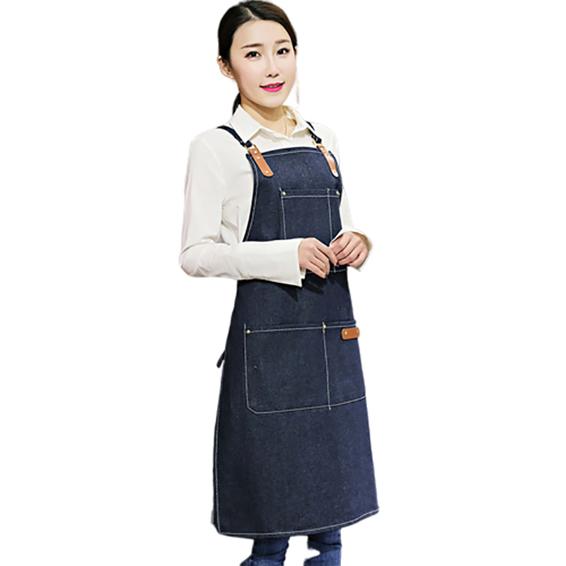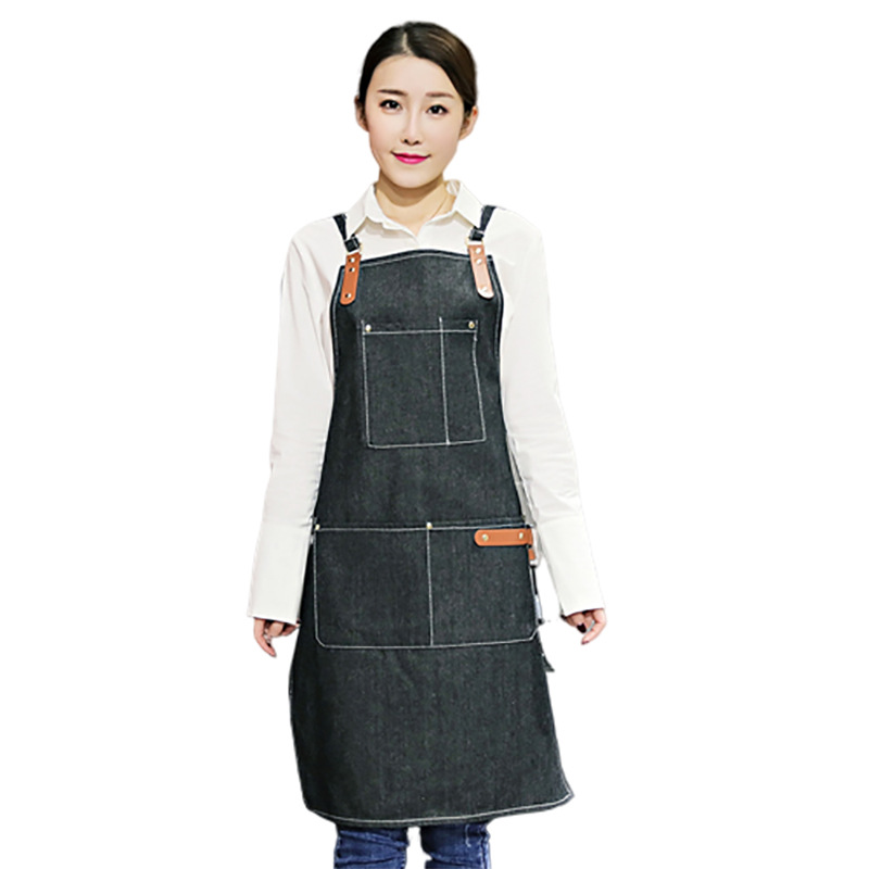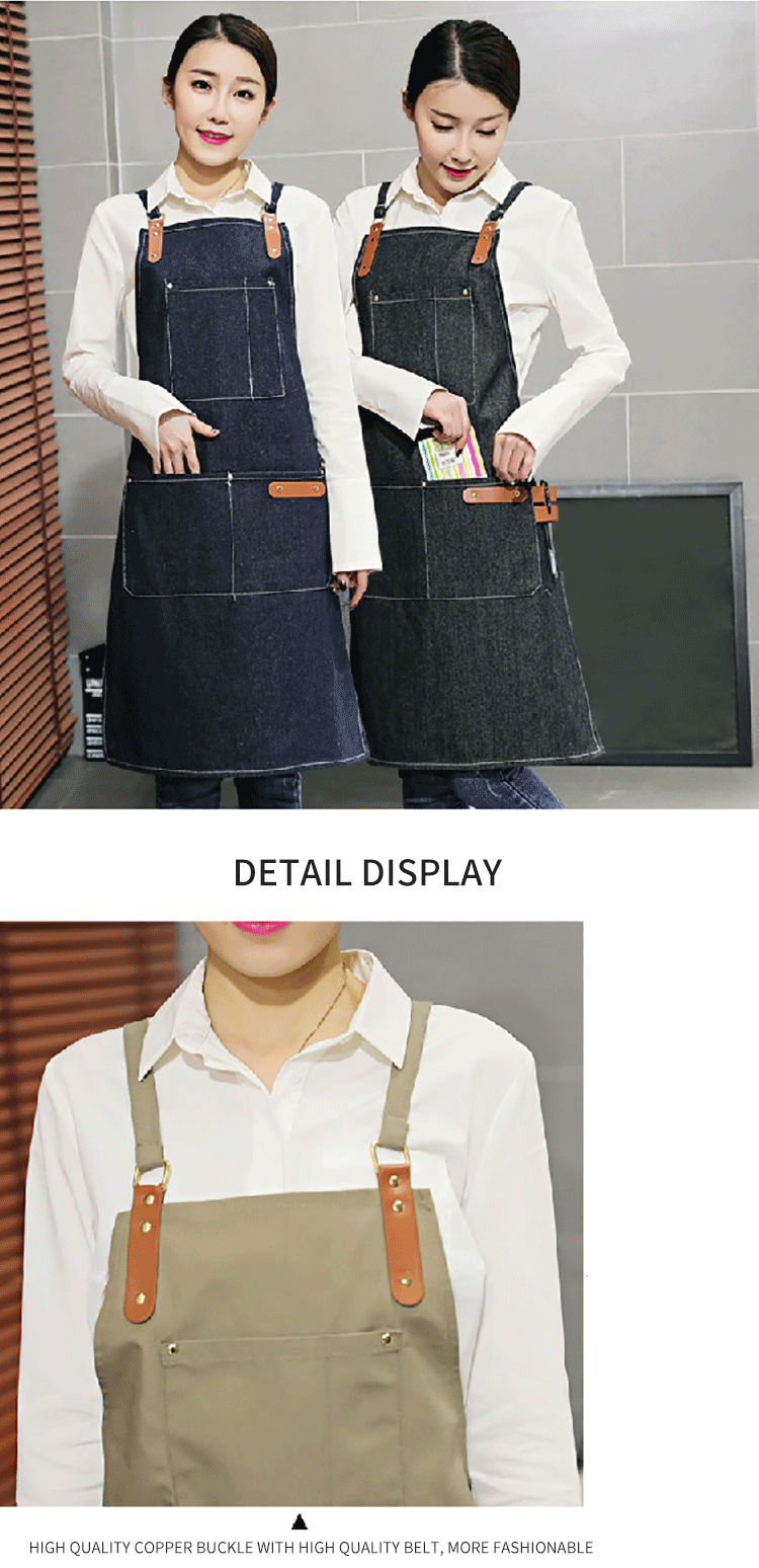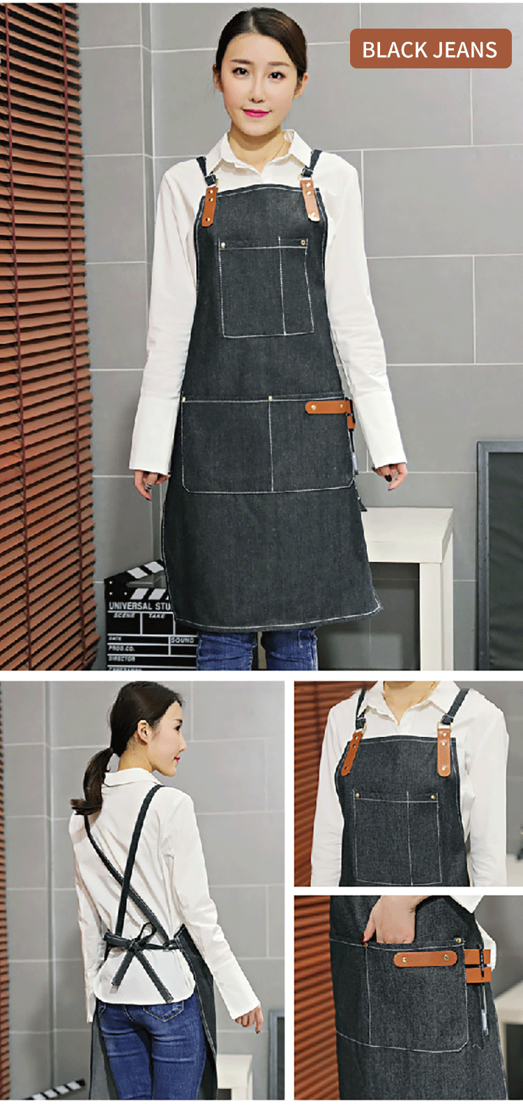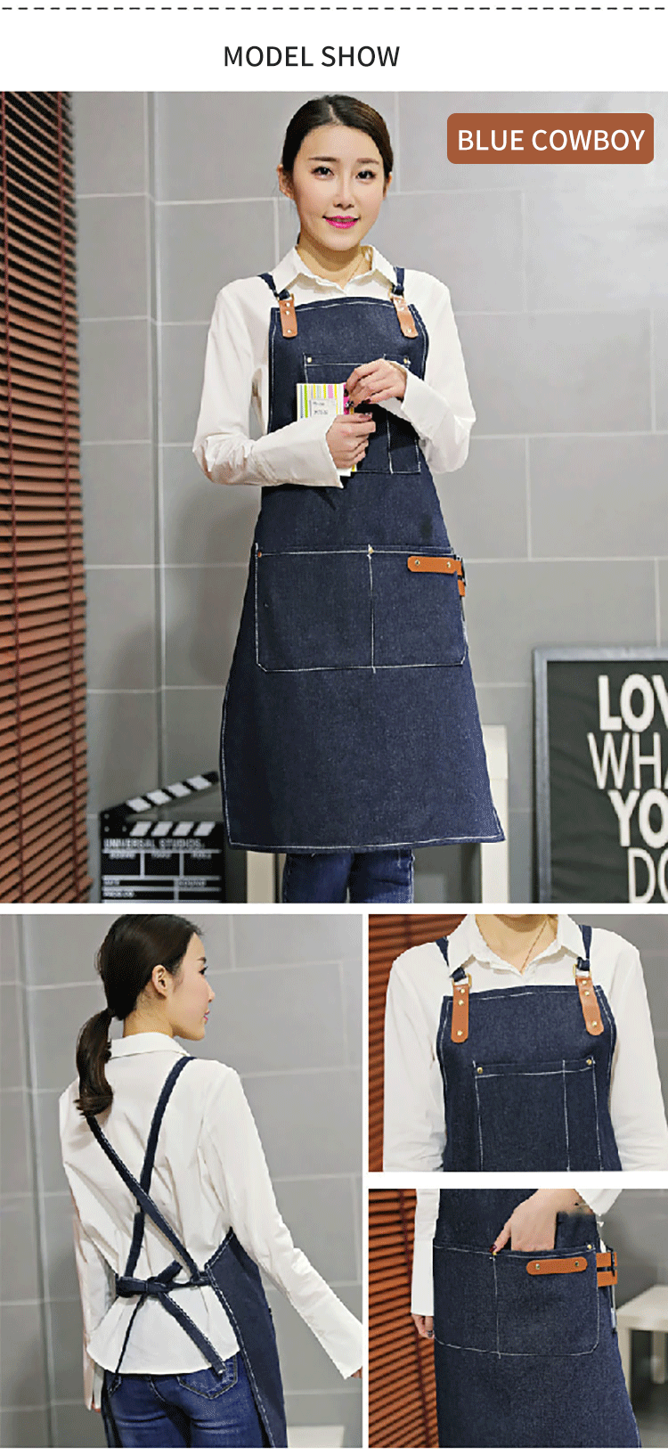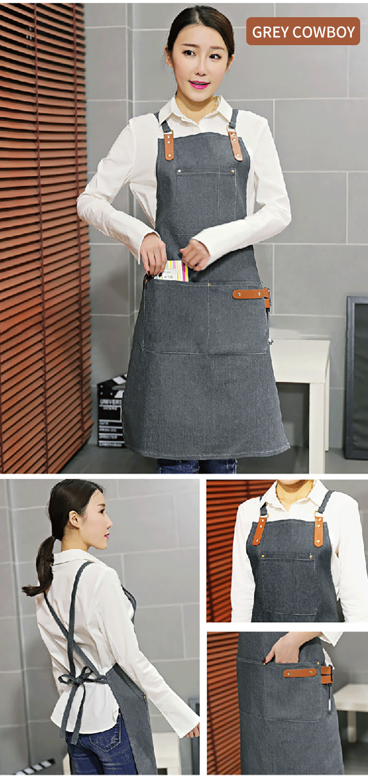 공장 직판 크로스보더 앞치마 맞춤 로고 데님 한국 스타일 남녀 공용 레스토랑 밀크티 가게 카페 정원 앞치마