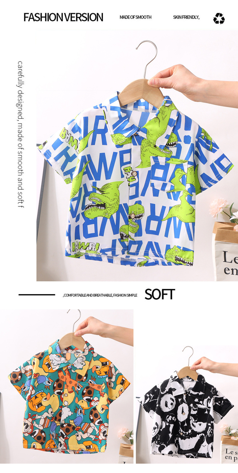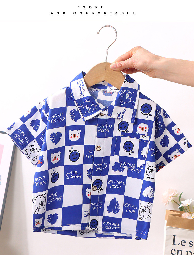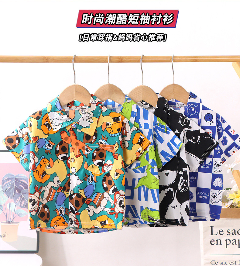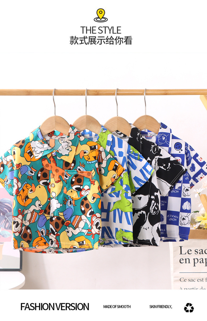 어린이 셔츠 소년 소녀 옷깃 셔츠 여름 아기 반팔 꽃 무늬 셔츠 꽃 무늬 셔츠 인형 셔츠 도매스토어 가기