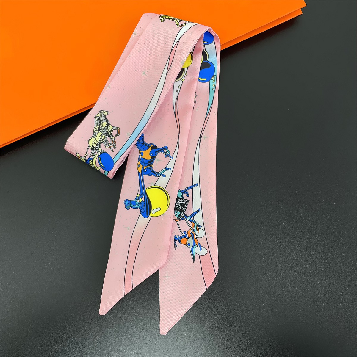 Net Red Live 2023 New H-Home Space 경마 스카프 모조 실크 스트립 포장 가방 핸들 실크 리드