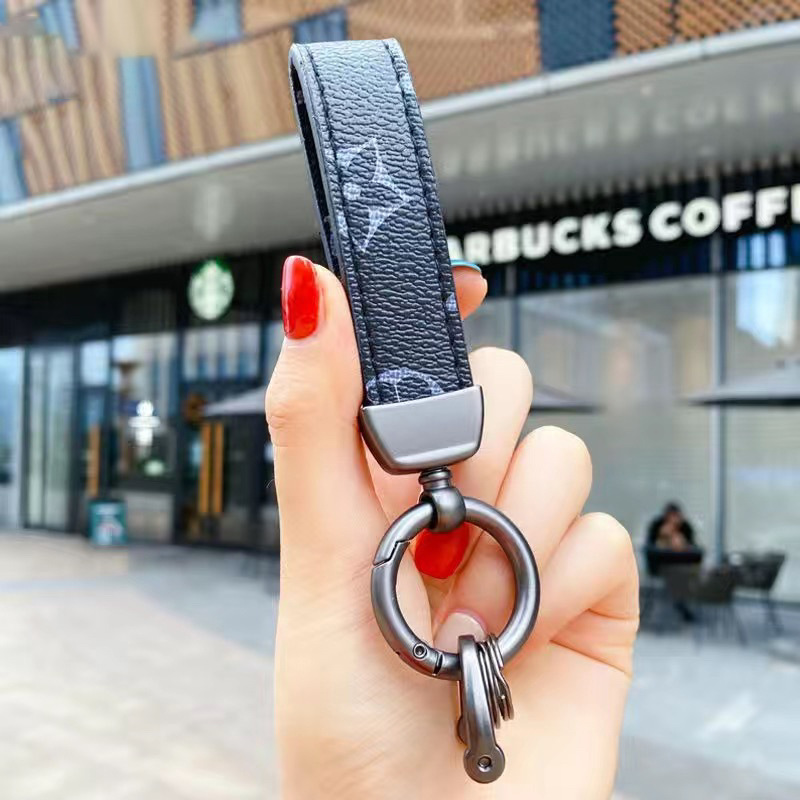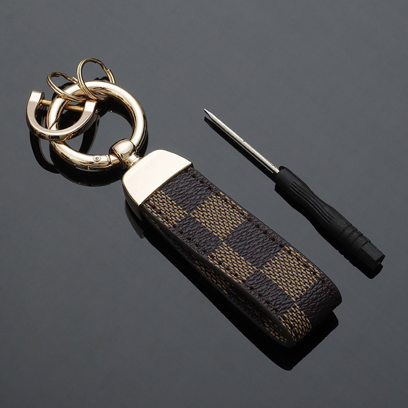 새로운 자동차 열쇠 고리 남자의 하이 엔드 라이트 럭셔리 키 체인 가죽 올드 패턴 격자 무늬 키 체인 펜던트 도매