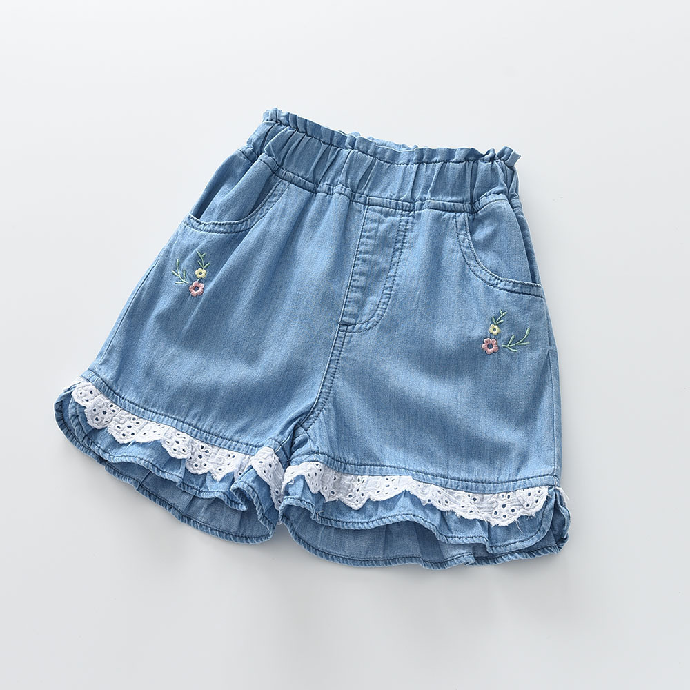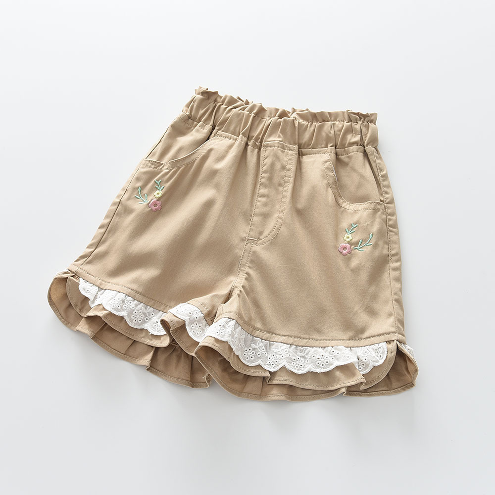 2023夏季新款 花朵绣花 女童蕾丝边裤脚休闲短裤