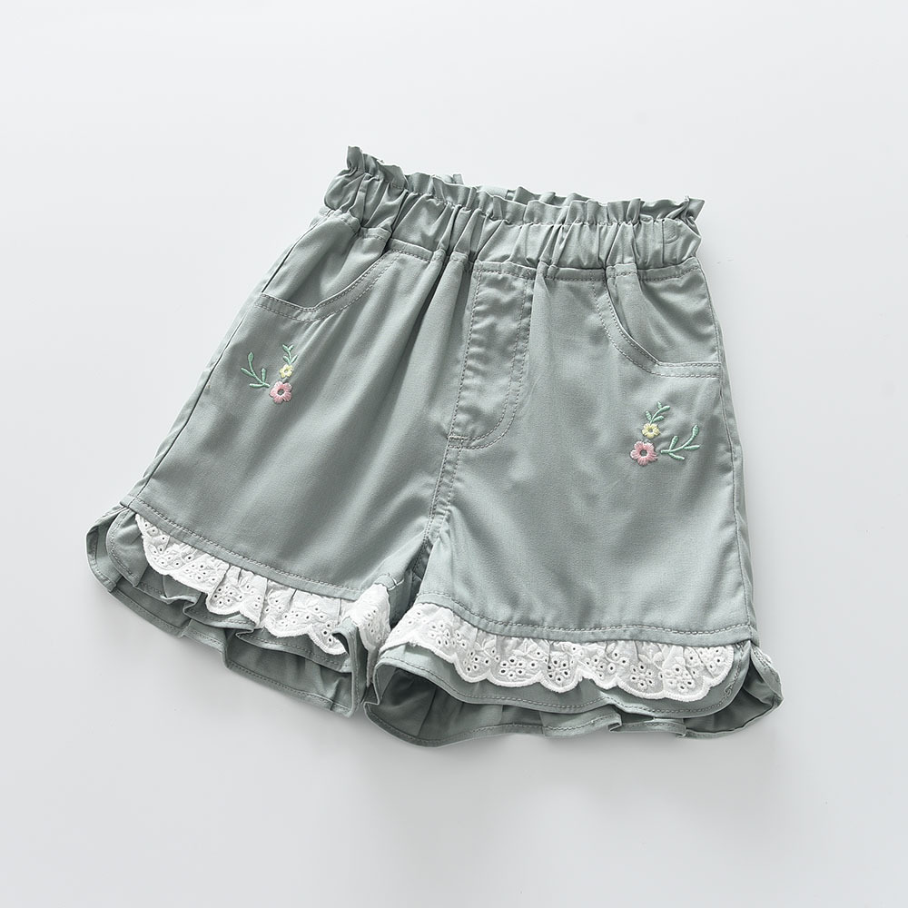 0323-04 2023 여름 새로운 꽃 자수 소녀 레이스 다리 캐주얼 반바지스토어 가기