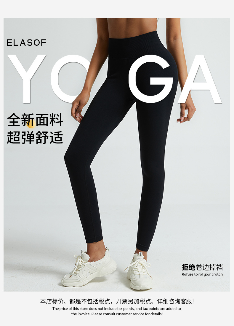 유럽 및 미국 스타일 고탄력 심리스 스포츠 피트니스 요가 팬츠, 힙업 팬츠, 복숭아힙, 필라테스, 러닝, 피트니스 팬츠 (여성용)