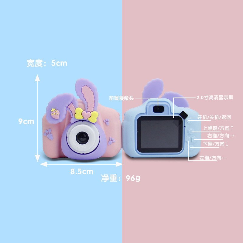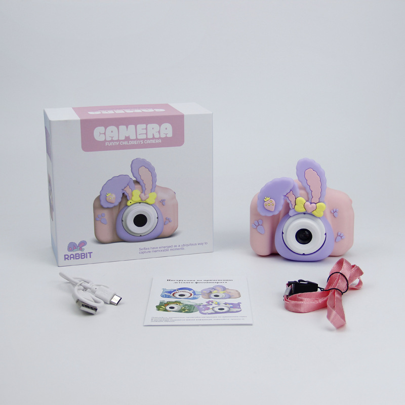 새로운 고화질 더블 카메라 어린이 디지털 미니 카메라 토끼 모양 실리콘 세트 개인 금형 교육용 완구스토어 가기