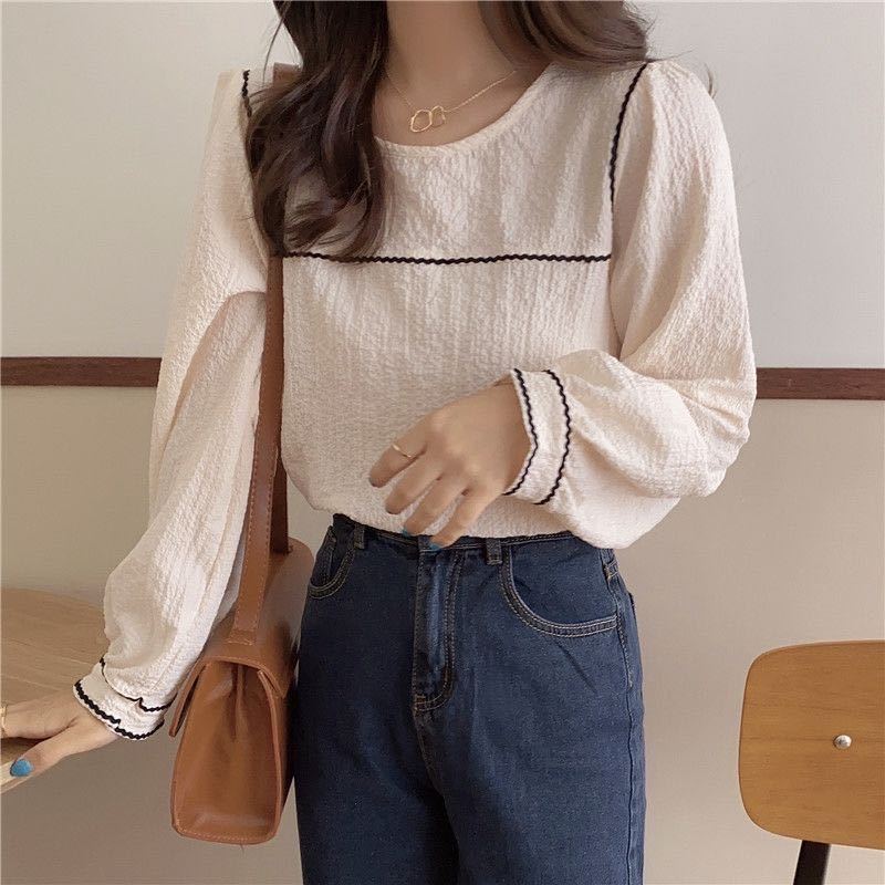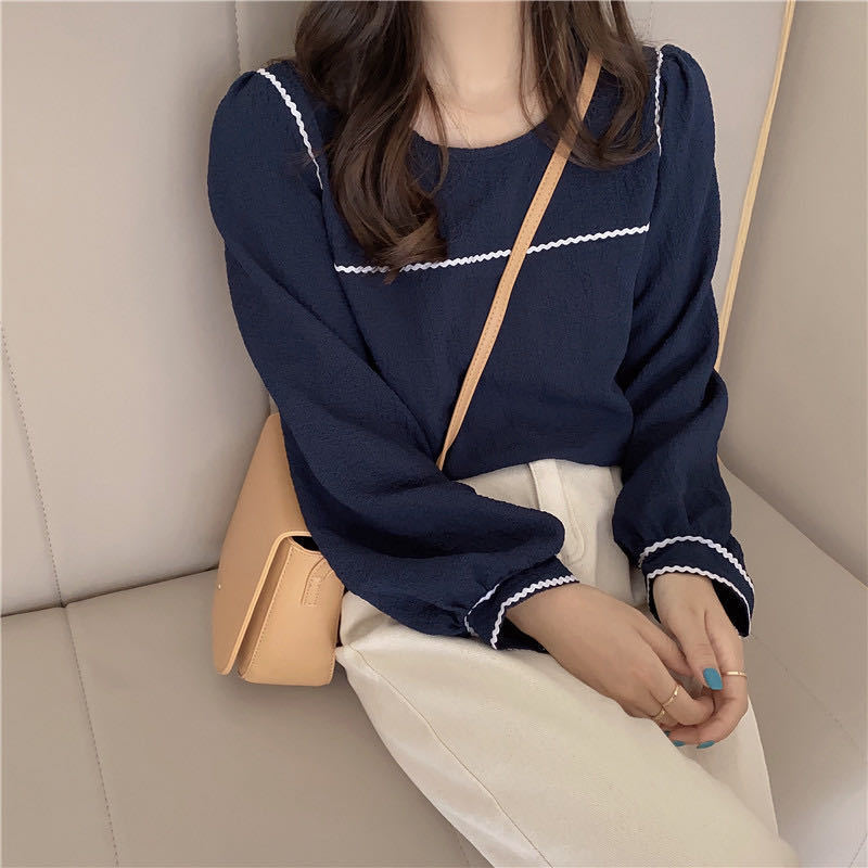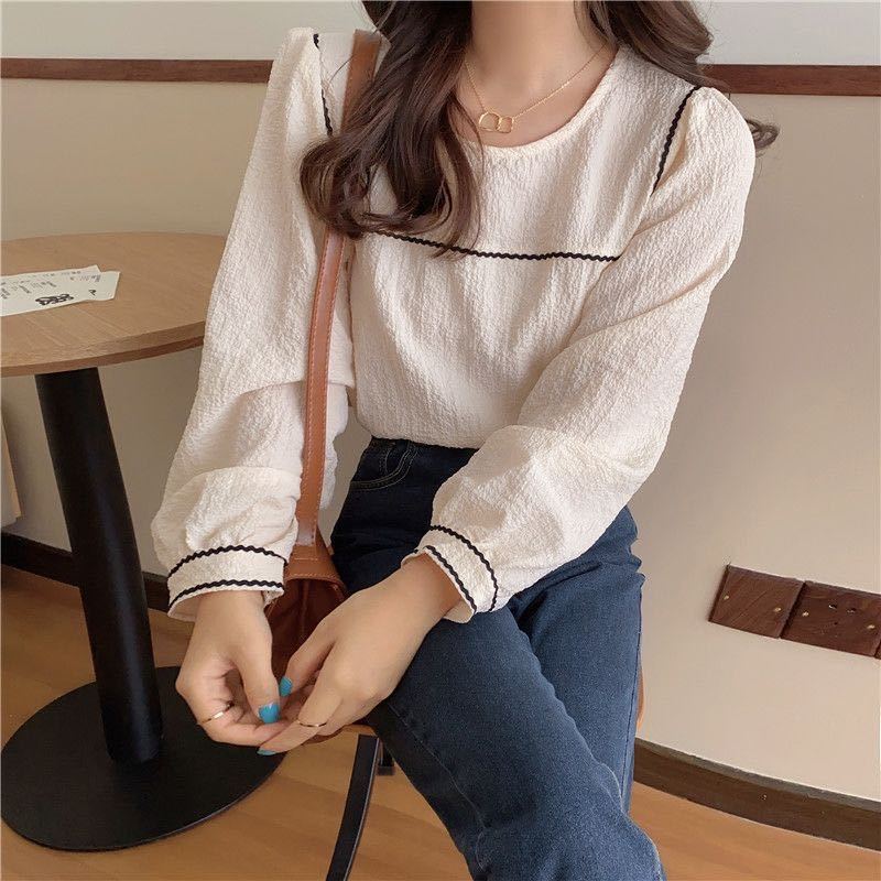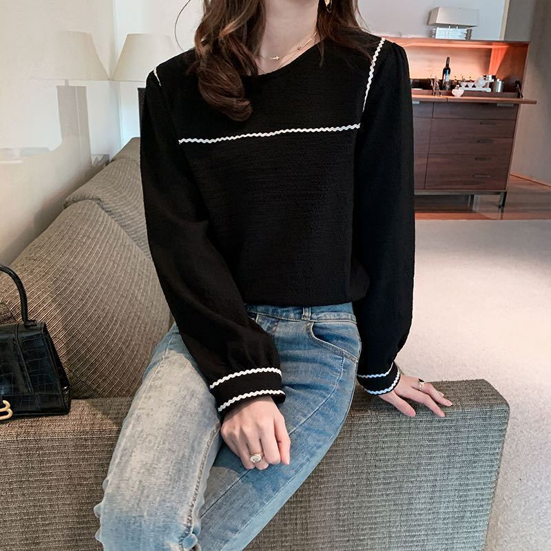 2022 봄과 여름 새로운 한국 스타일 우아한 퍼프 슬리브 쉬폰 셔츠 여성용 겉옷 디자인 감각 틈새 웨스턴 스타일 루즈한 탑스토어 가기