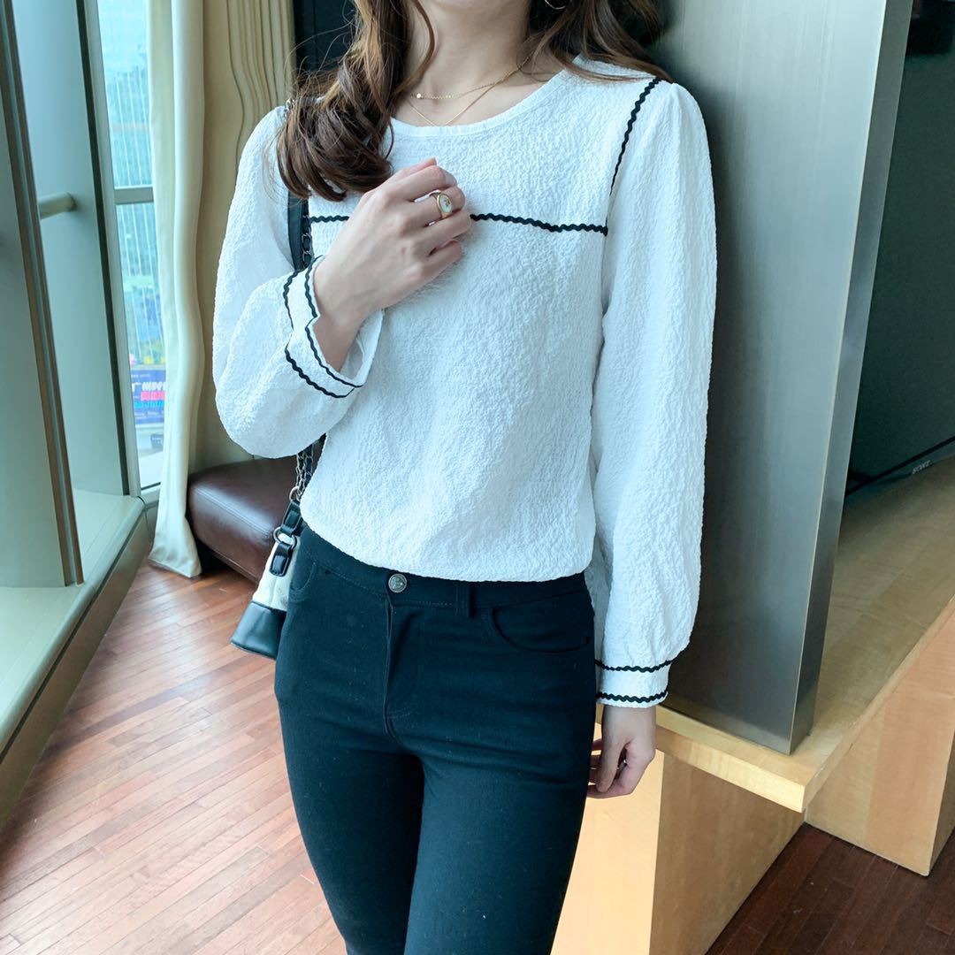 2022 봄과 여름 새로운 한국 스타일 우아한 퍼프 슬리브 쉬폰 셔츠 여성용 겉옷 디자인 감각 틈새 웨스턴 스타일 루즈한 탑