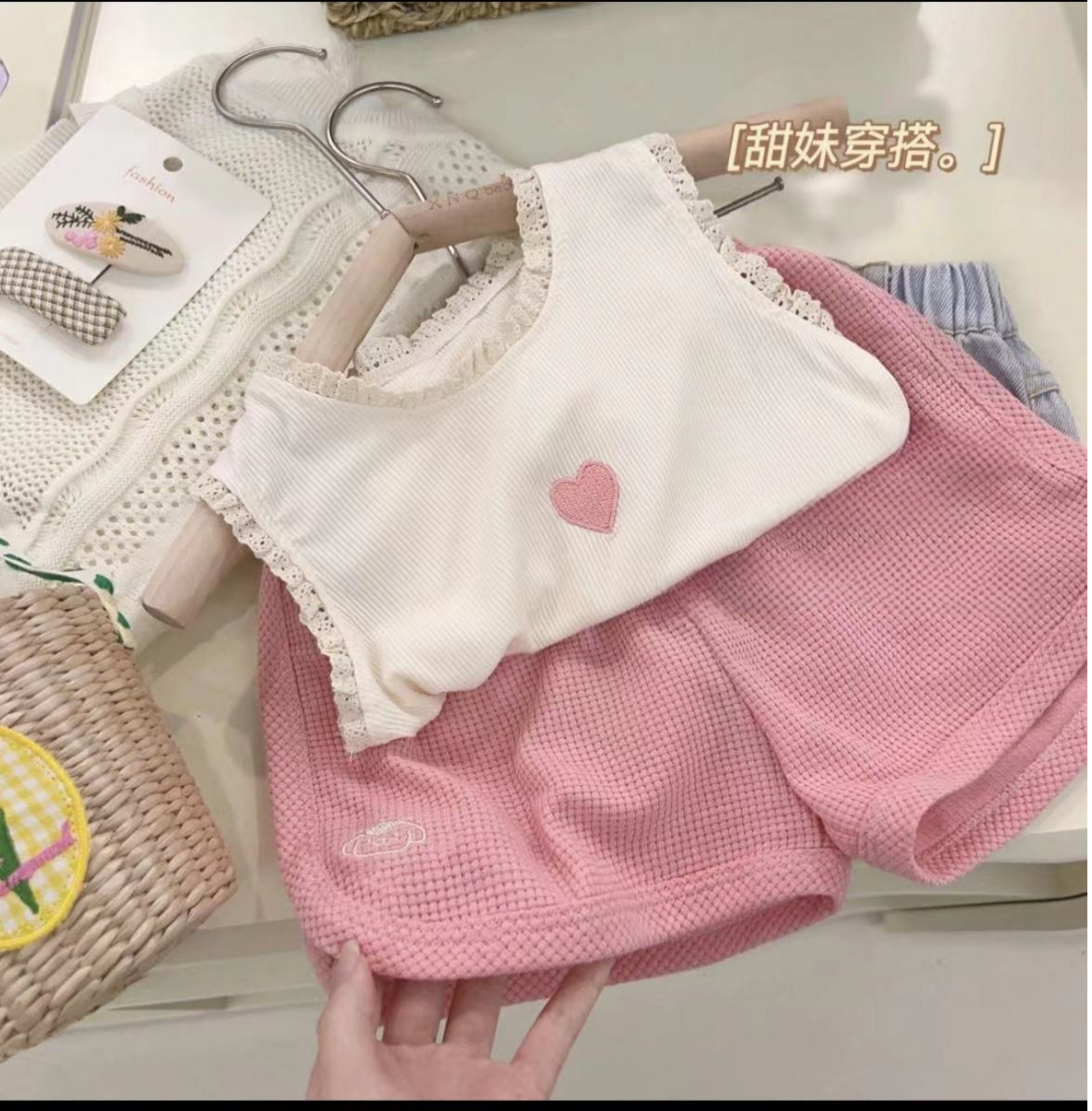 女童洋气套装夏季新网红爆款休闲两件套幼儿园朋友夏季背心+短裤
