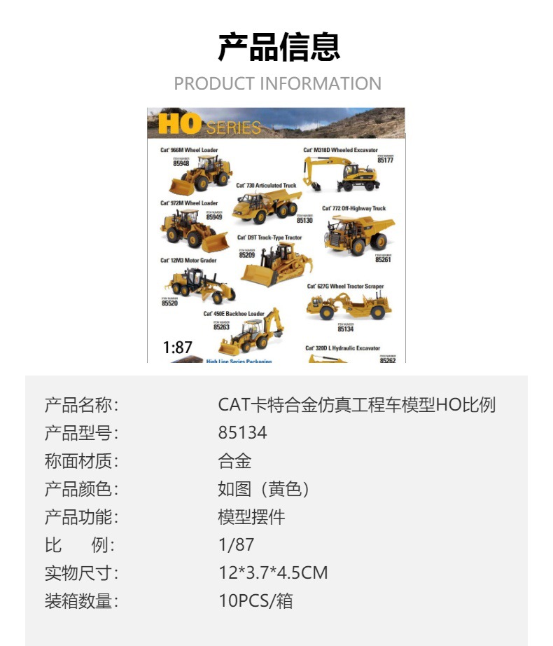 DM 카터 엔지니어링 차량 CAT 1/87 굴삭기 로더 불도저 평탄기 HO 모델 합금 선물스토어 가기