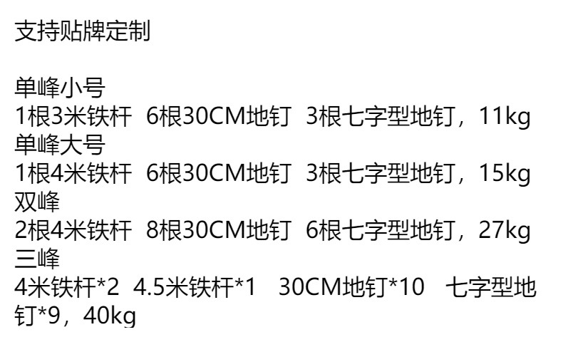 • 단일 피크 스몰 사이즈 6*6*3 미터