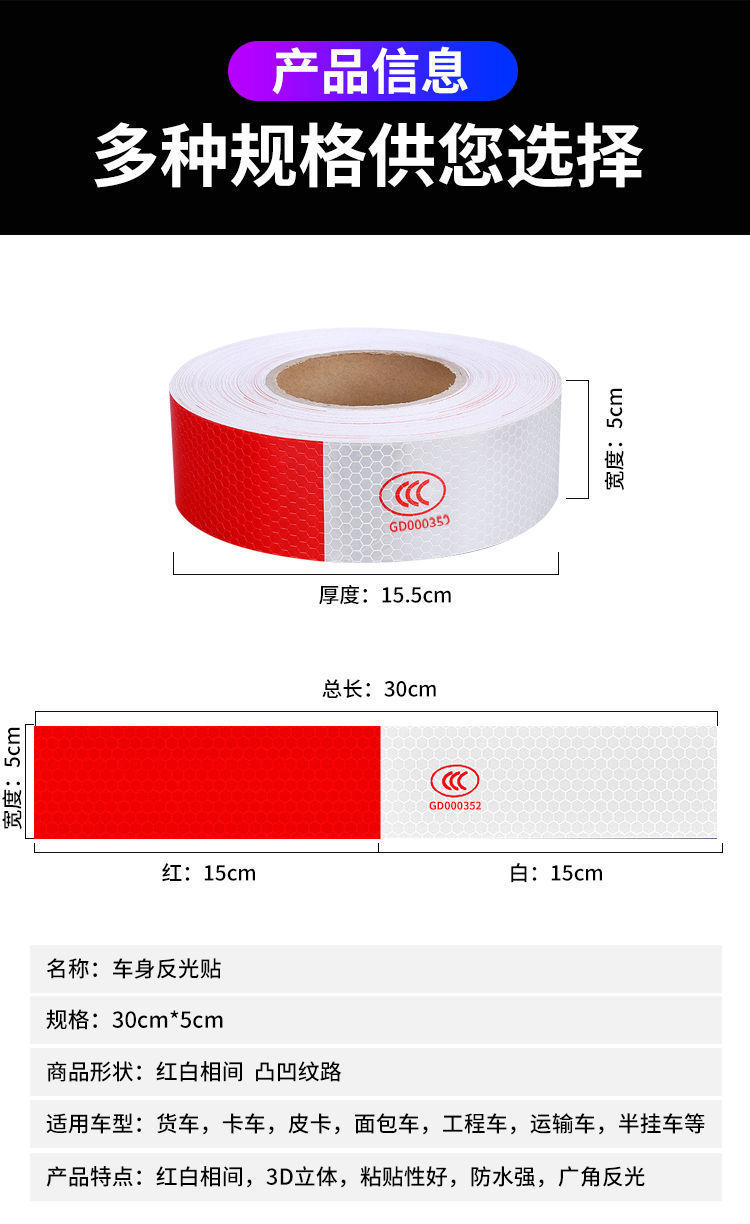 정품 트럭 반사 스티커 차체 반사 스트립 빨간색과 흰색 스티커 차량 연간 검사 로고 연간 검토 반사 테이프스토어 가기
