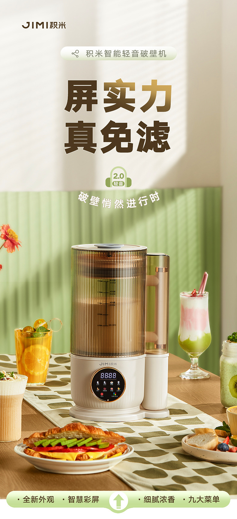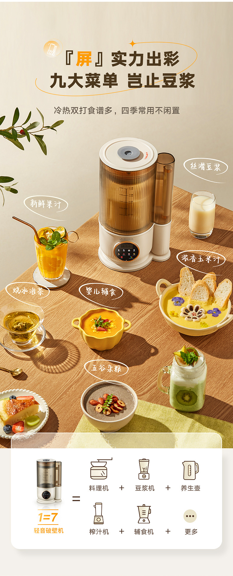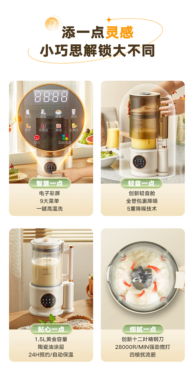 Jimi Bass 벽 깨는 기계 난방 가정용 자동 두유 기계 다기능 요리 과즙 짜는기구 주스 보충 식품 기계스토어 가기