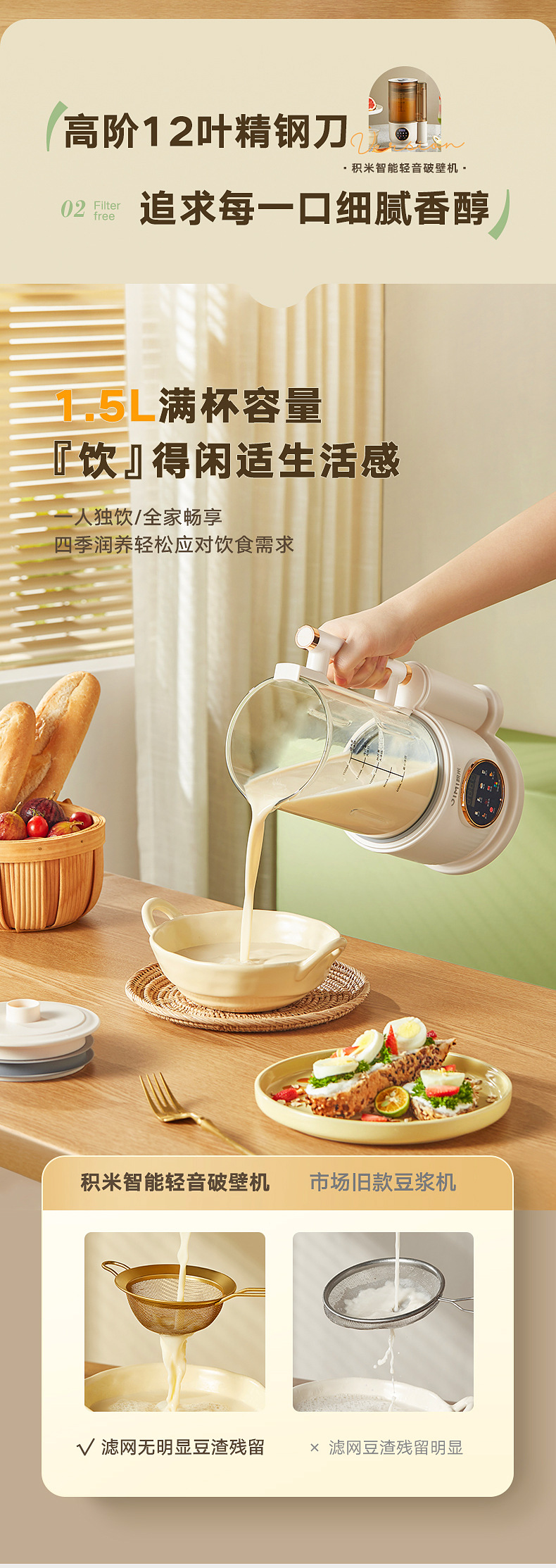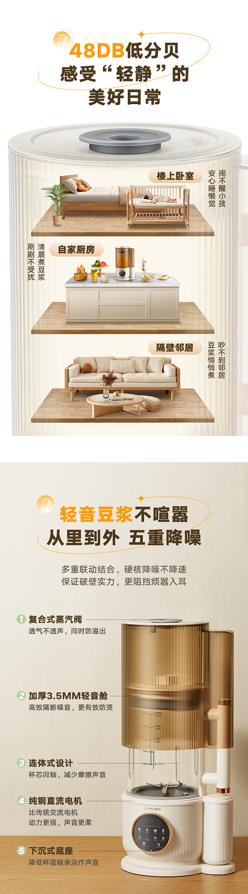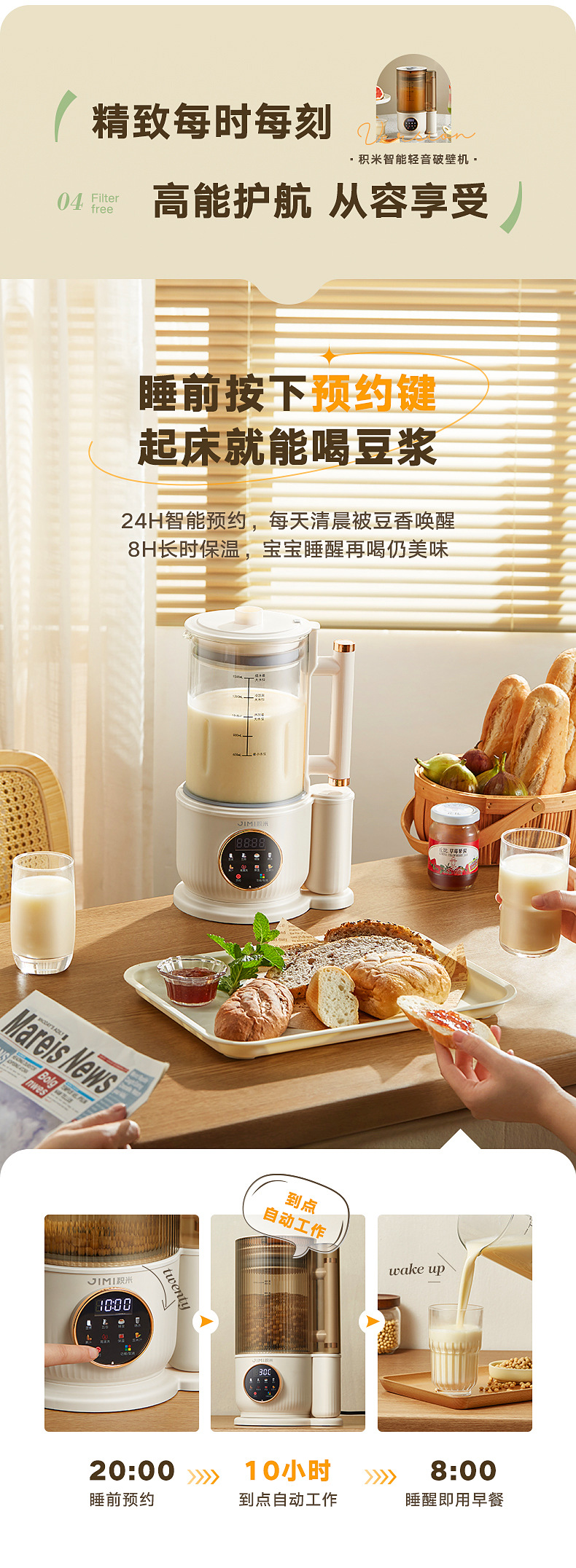 Jimi Bass 벽 깨는 기계 난방 가정용 자동 두유 기계 다기능 요리 과즙 짜는기구 주스 보충 식품 기계스토어 가기