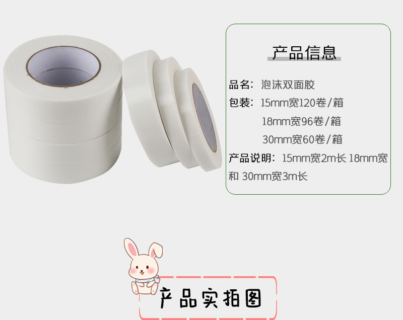 사무용품 폼 양면 테이프, 넓고 두꺼운 스폰지 접착제, 강력한 접착력, 15/18/30mm 폭 테이프 도매