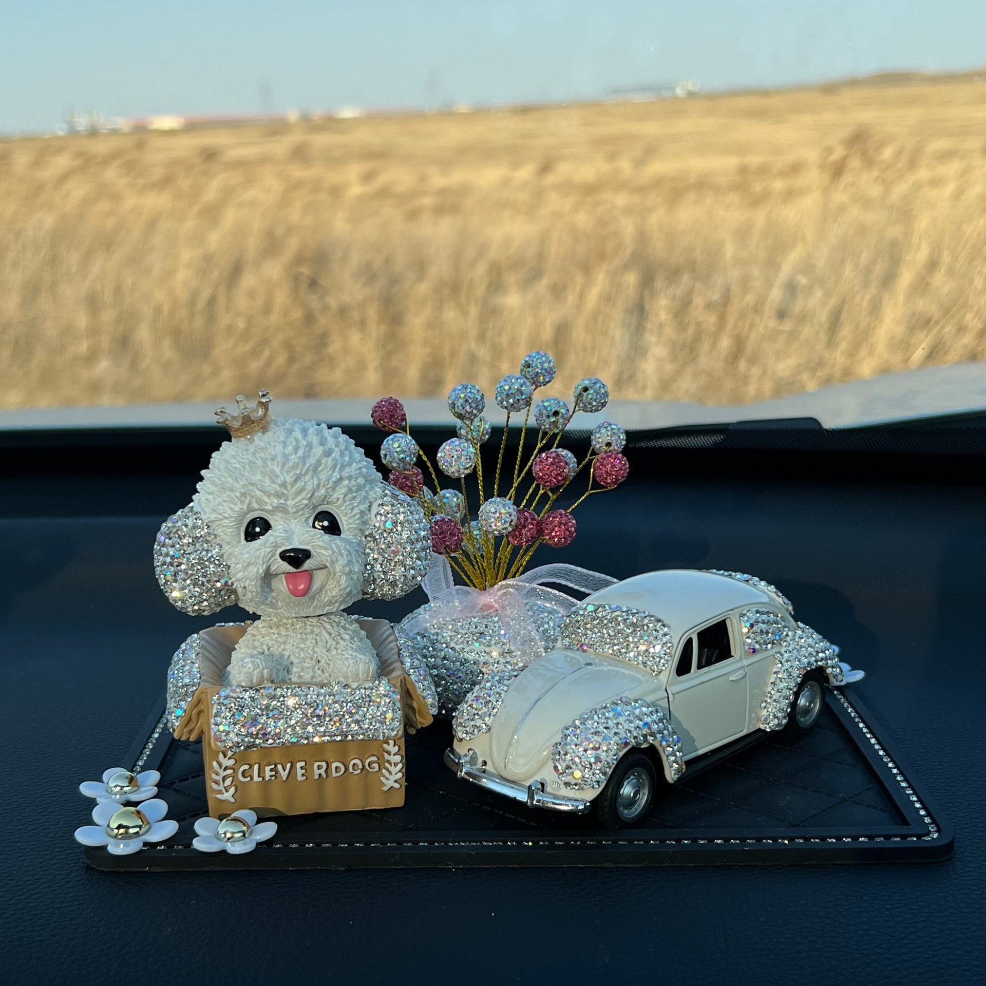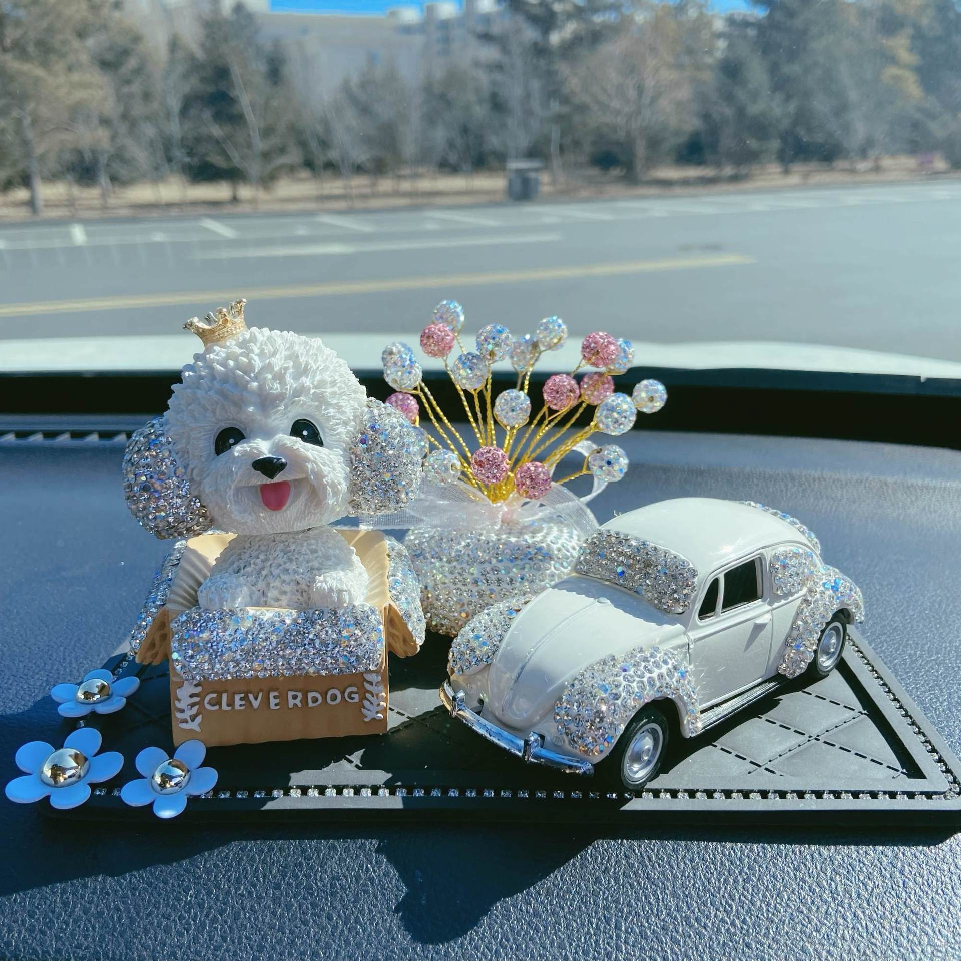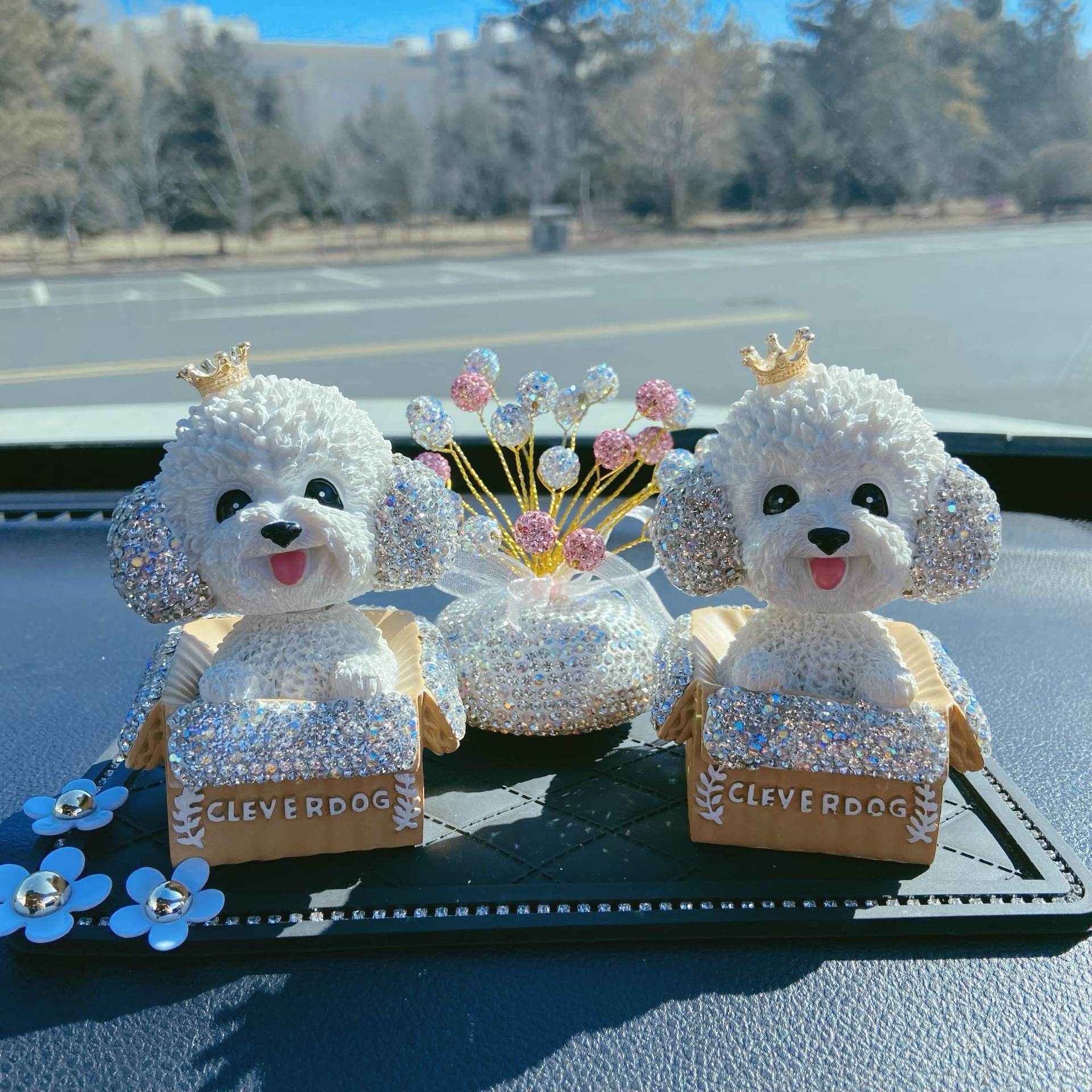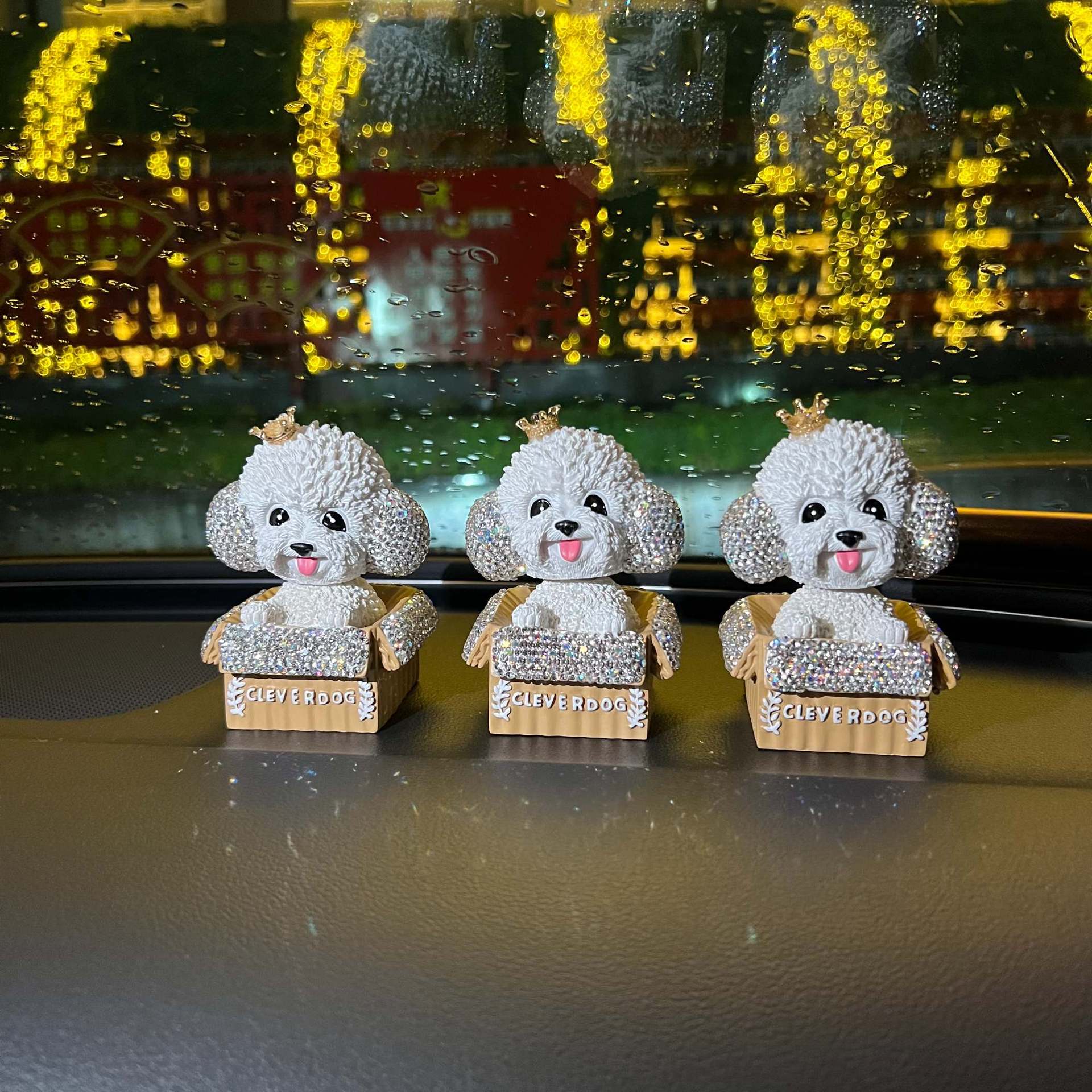 개인화 된 창조적 인 자동차 장식품 장식 다이아몬드 흔들리는 머리 테디 개 자동차 센터 콘솔 장식품 자동차 인테리어 장식품
