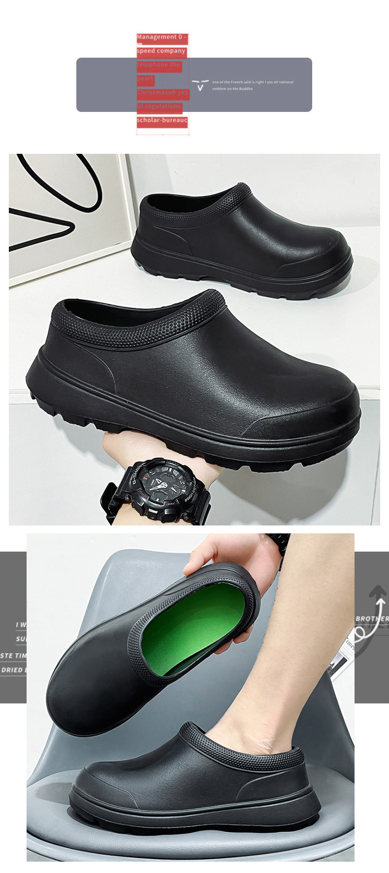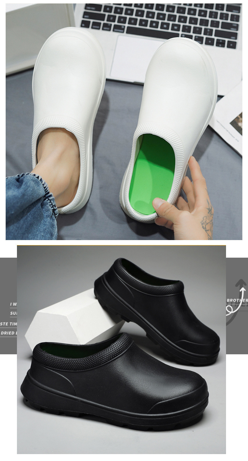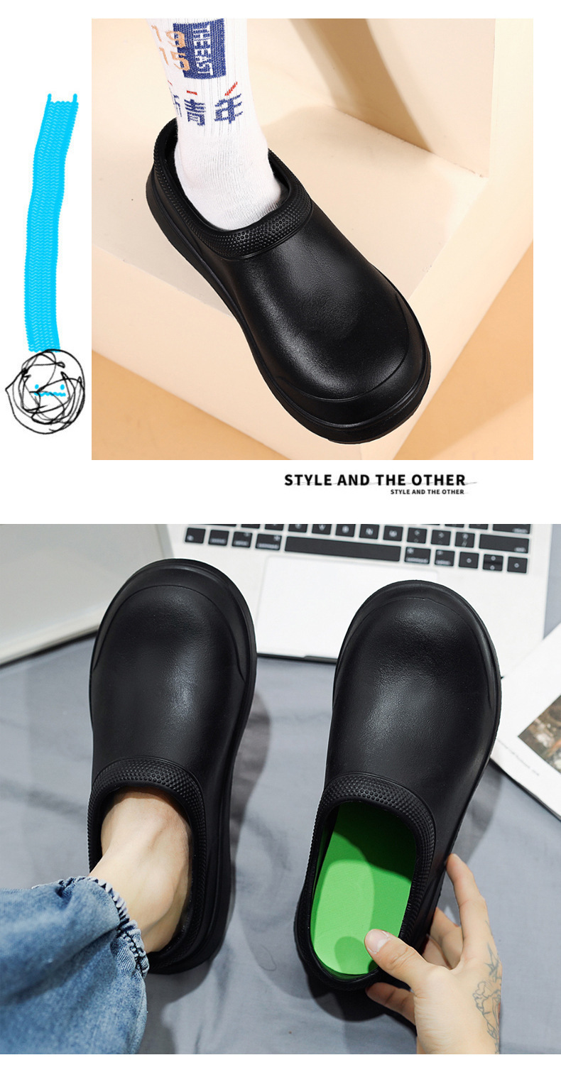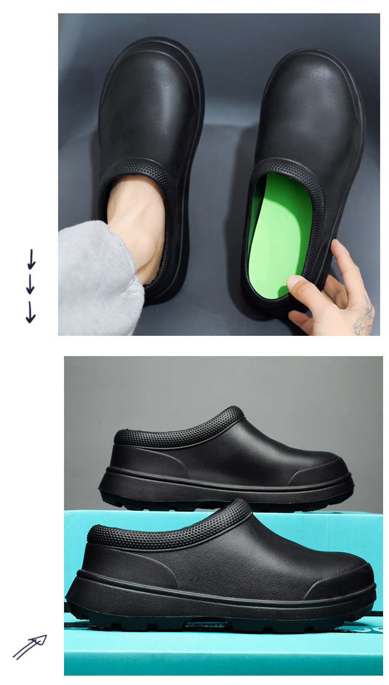 요리사 신발 통기성 미끄럼 방지 방수 및 내유성 주방 신발 남성용 봄과 가을 작업 신발 간호사 신발 비 신발 여성용 물 신발 블랙