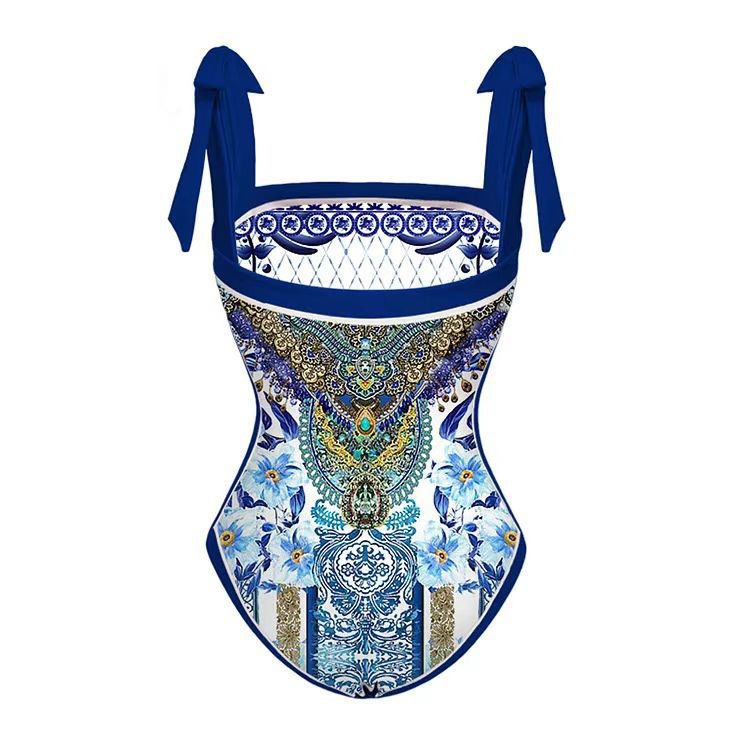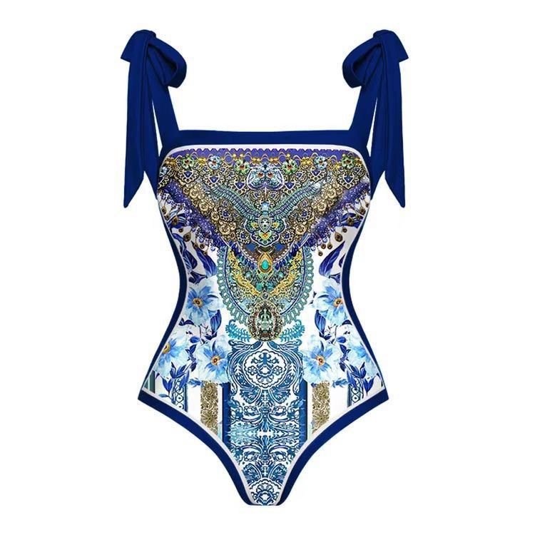2023 대외 무역 새로운 투피스 프린트 수영복 슬림핏 슬리밍 보수적 안티 글로우 Instagram 스타일 아마존 수영복스토어 가기