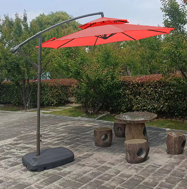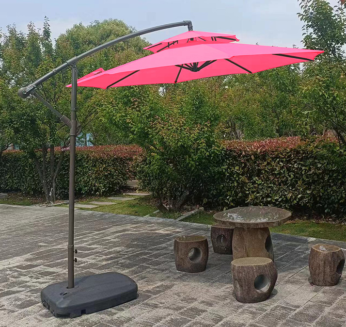 • 두꺼운 바나나 우산 더블 탑 로즈 레드 2.7m 플러스 물 탱크 베이스