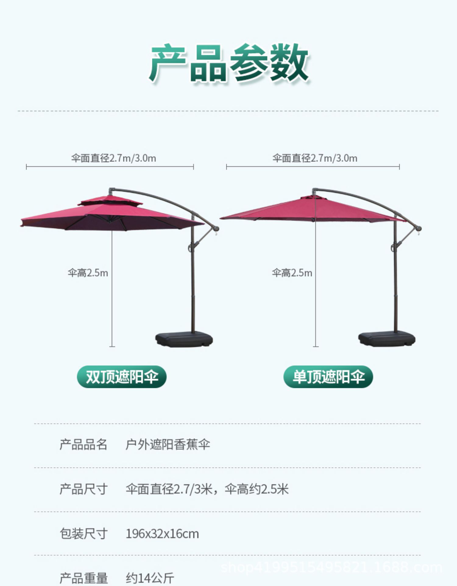 • 두꺼운 바나나 우산 더블 탑 2.7 미터 화이트 워터 탱크베이스