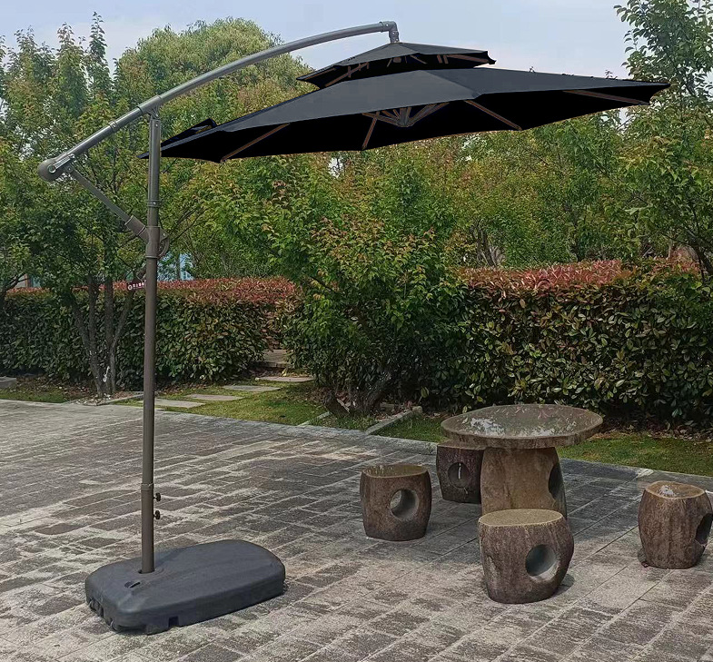 • 두꺼운 바나나 우산 더블 탑 2.7 m 블랙 탱크 프리 베이스