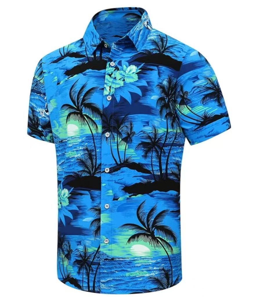 2023 새로운 남자 하와이 유럽과 미국 남자의 3D 인쇄 대외 무역 남자의 반팔 느슨한 얇은 캐주얼 셔츠