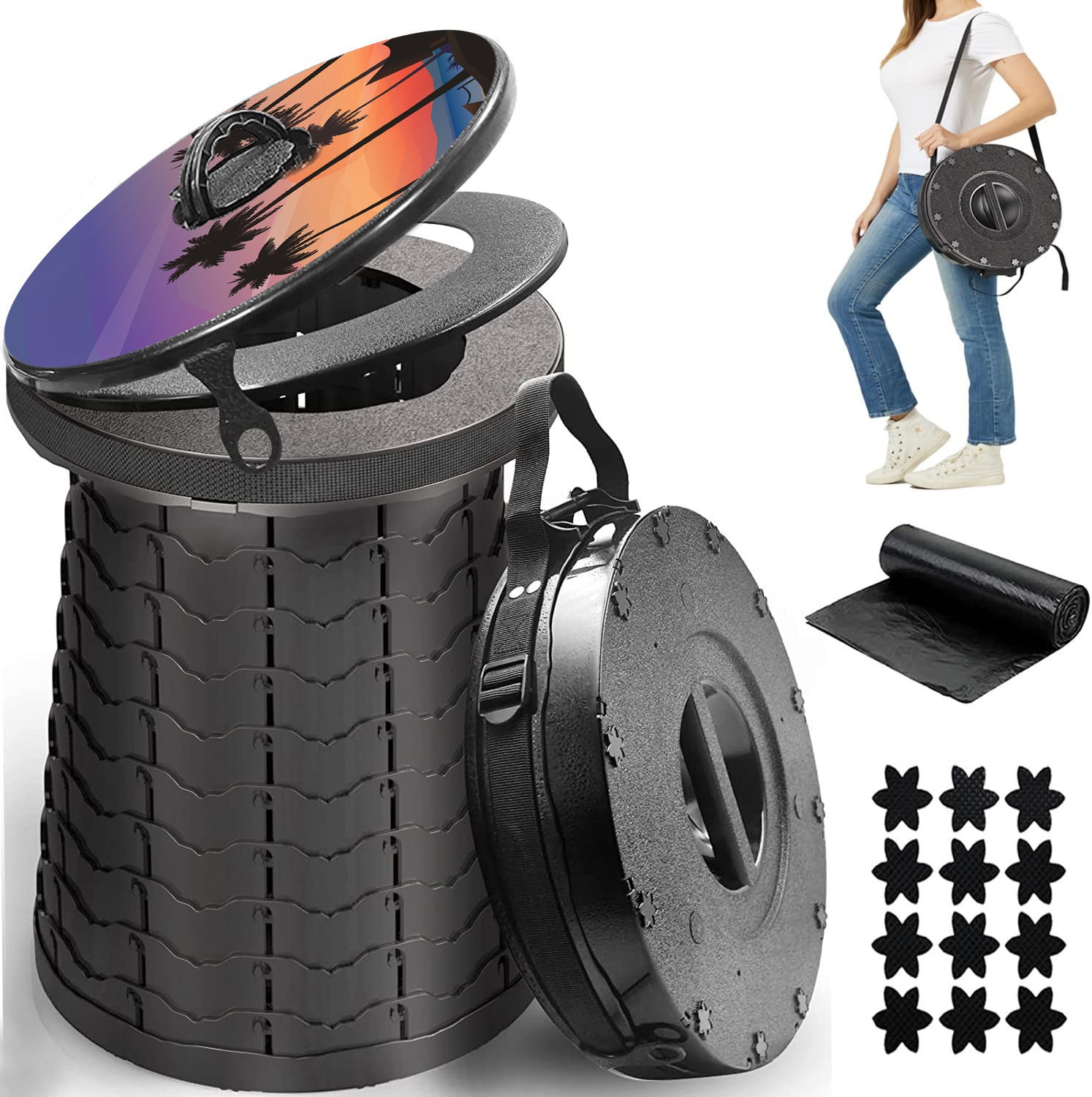 야외 캠핑 텔레스코픽 접이식 변기 휴대용 다기능 자동차 두꺼운 쓰레기통 횡단 공장 도매스토어 가기