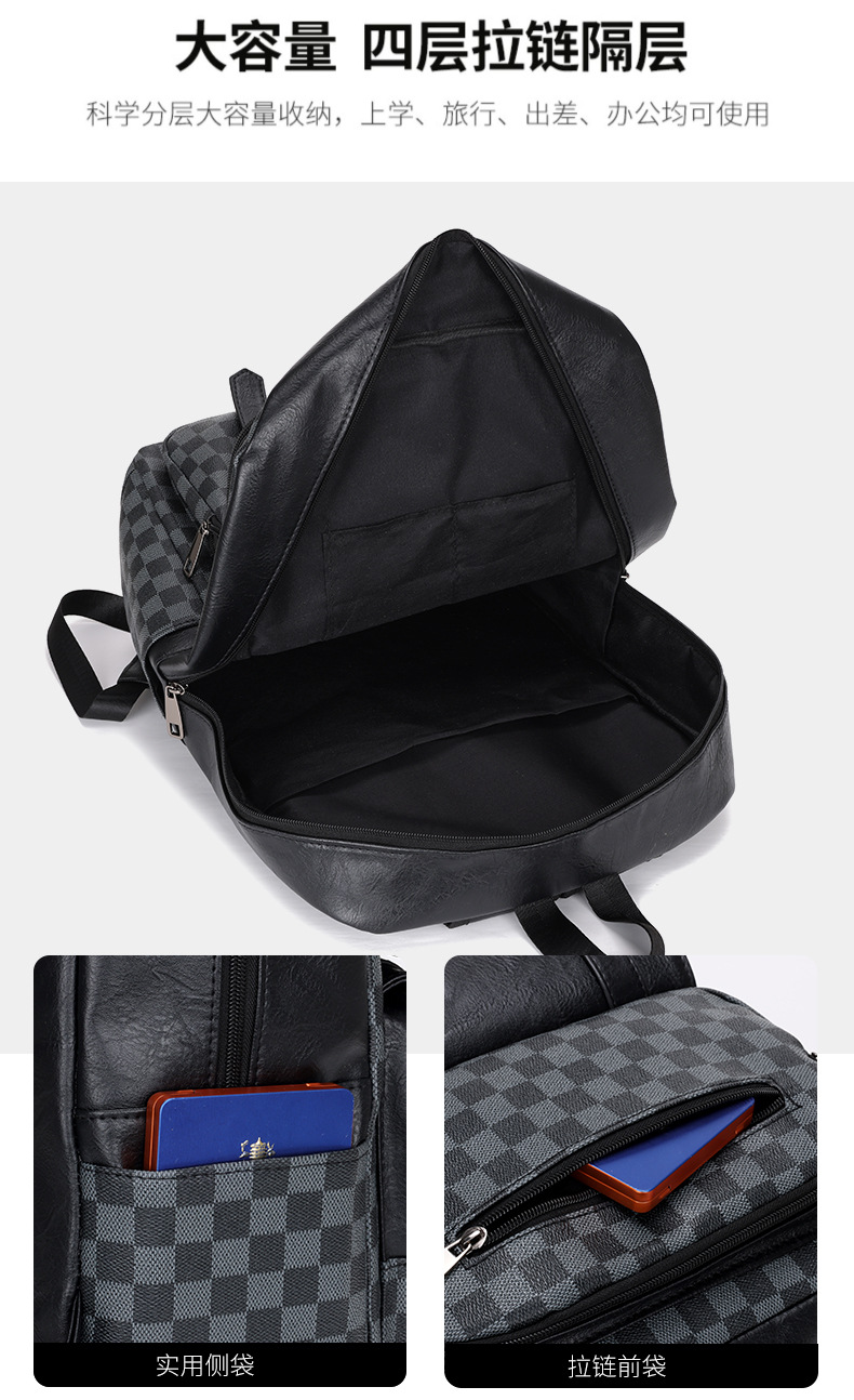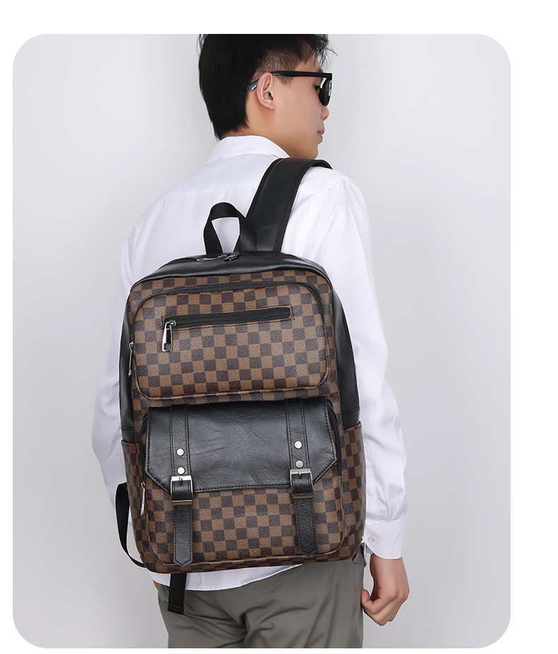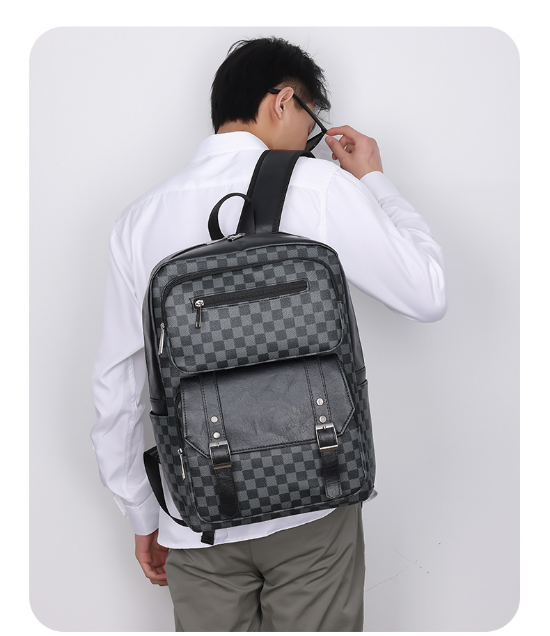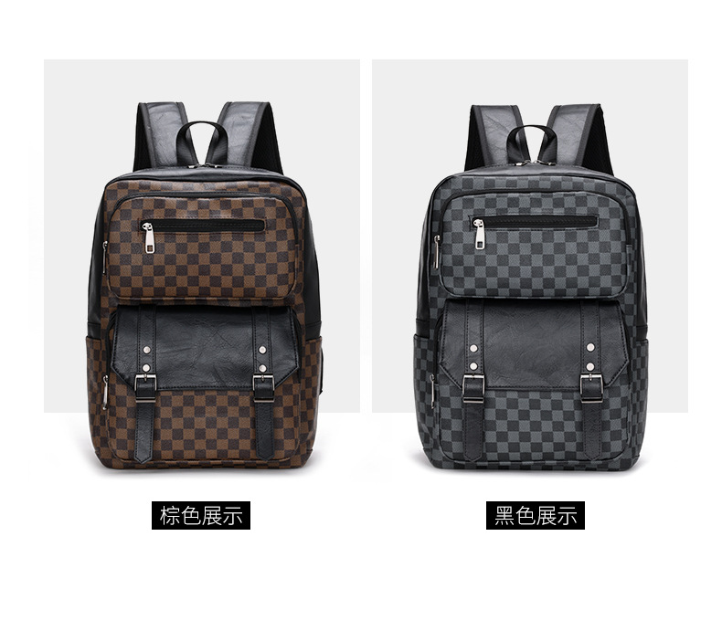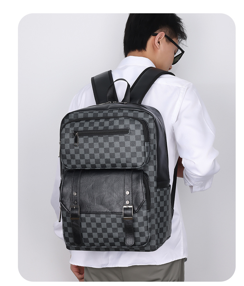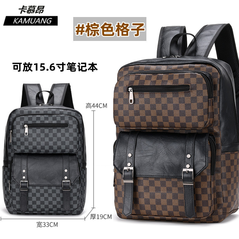 새로운 한국 스타일 배낭 가죽 대용량 남성과 여성의 트렌디 한 격자 무늬 배낭 여행 가방 학생 학교 가방 컴퓨터 가방