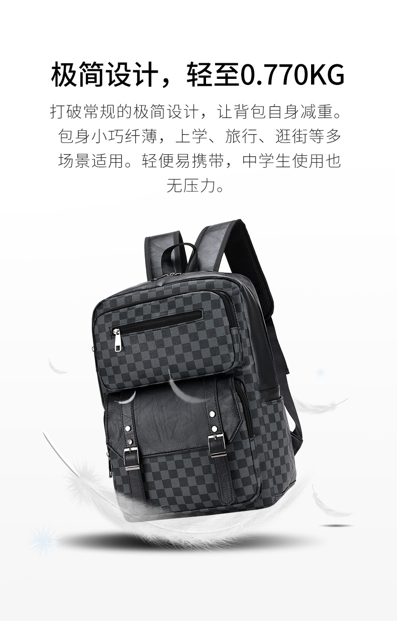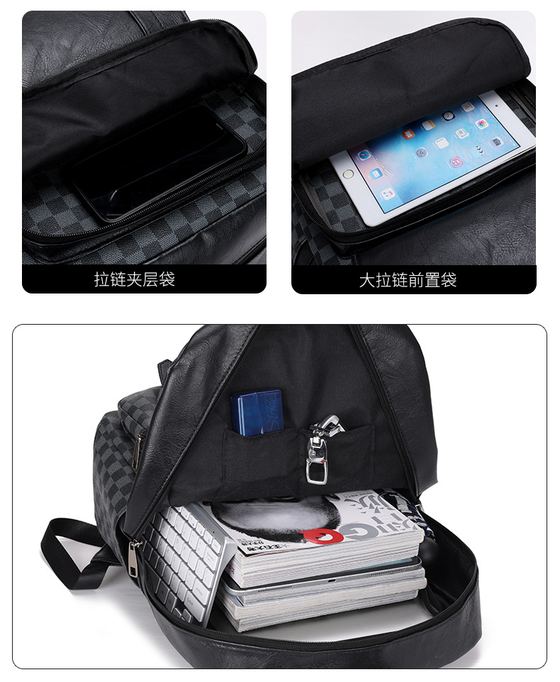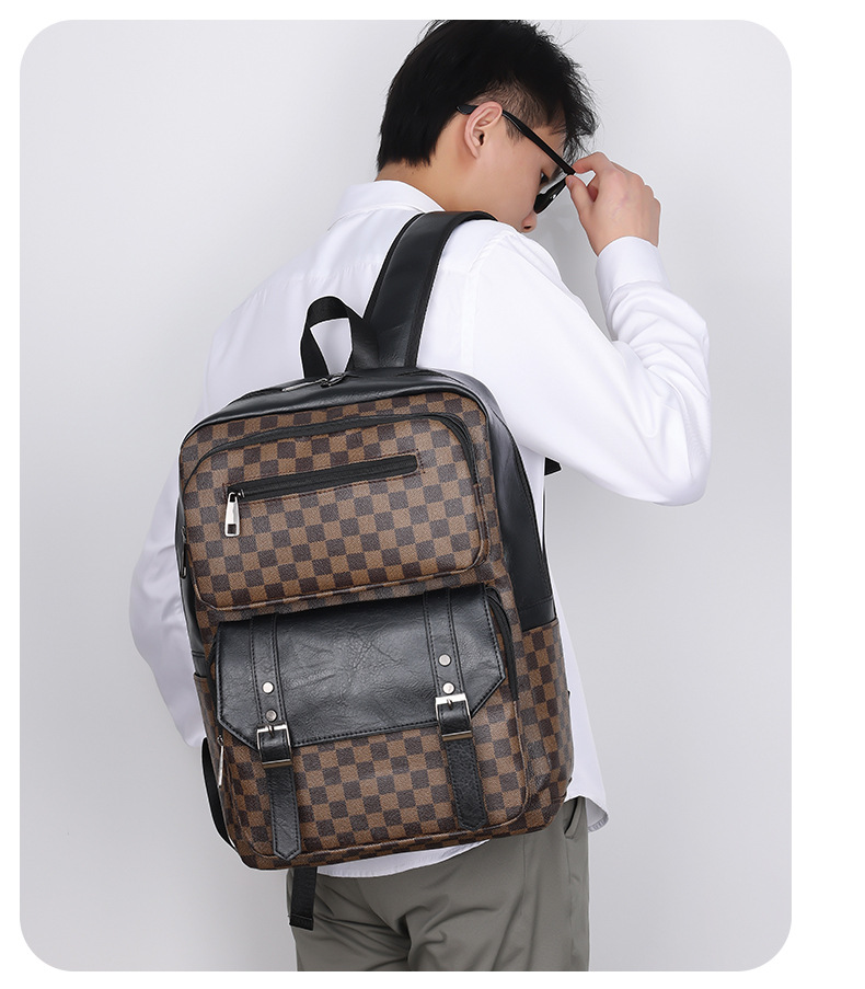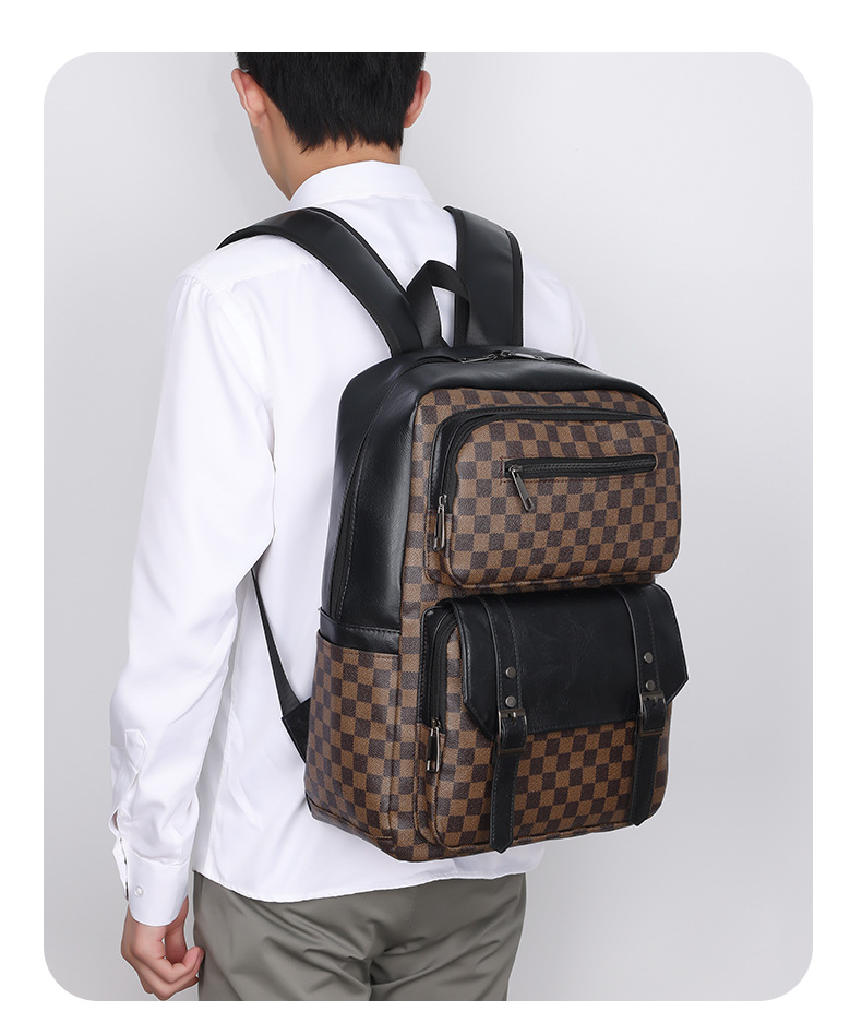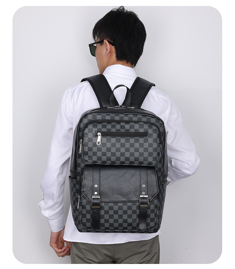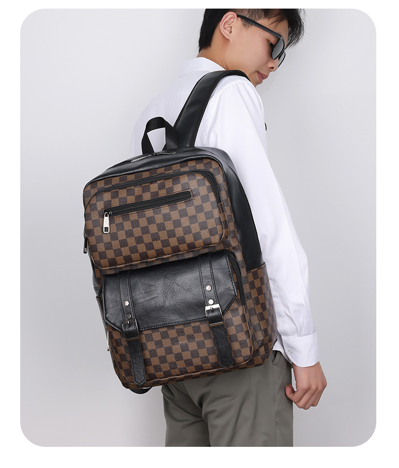 새로운 한국 스타일 배낭 가죽 대용량 남성과 여성의 트렌디 한 격자 무늬 배낭 여행 가방 학생 학교 가방 컴퓨터 가방