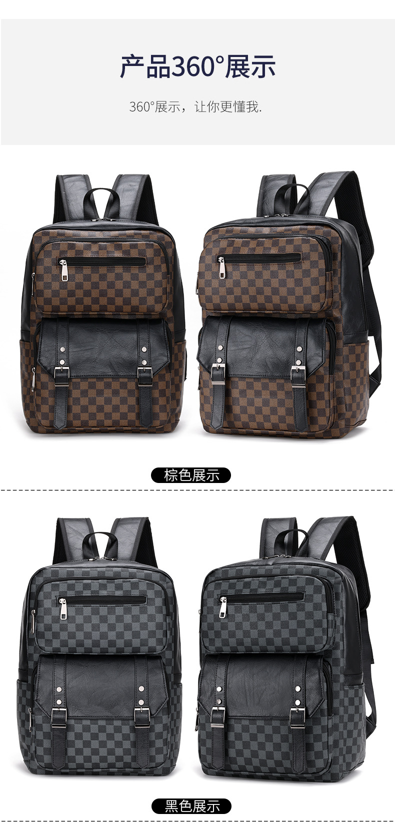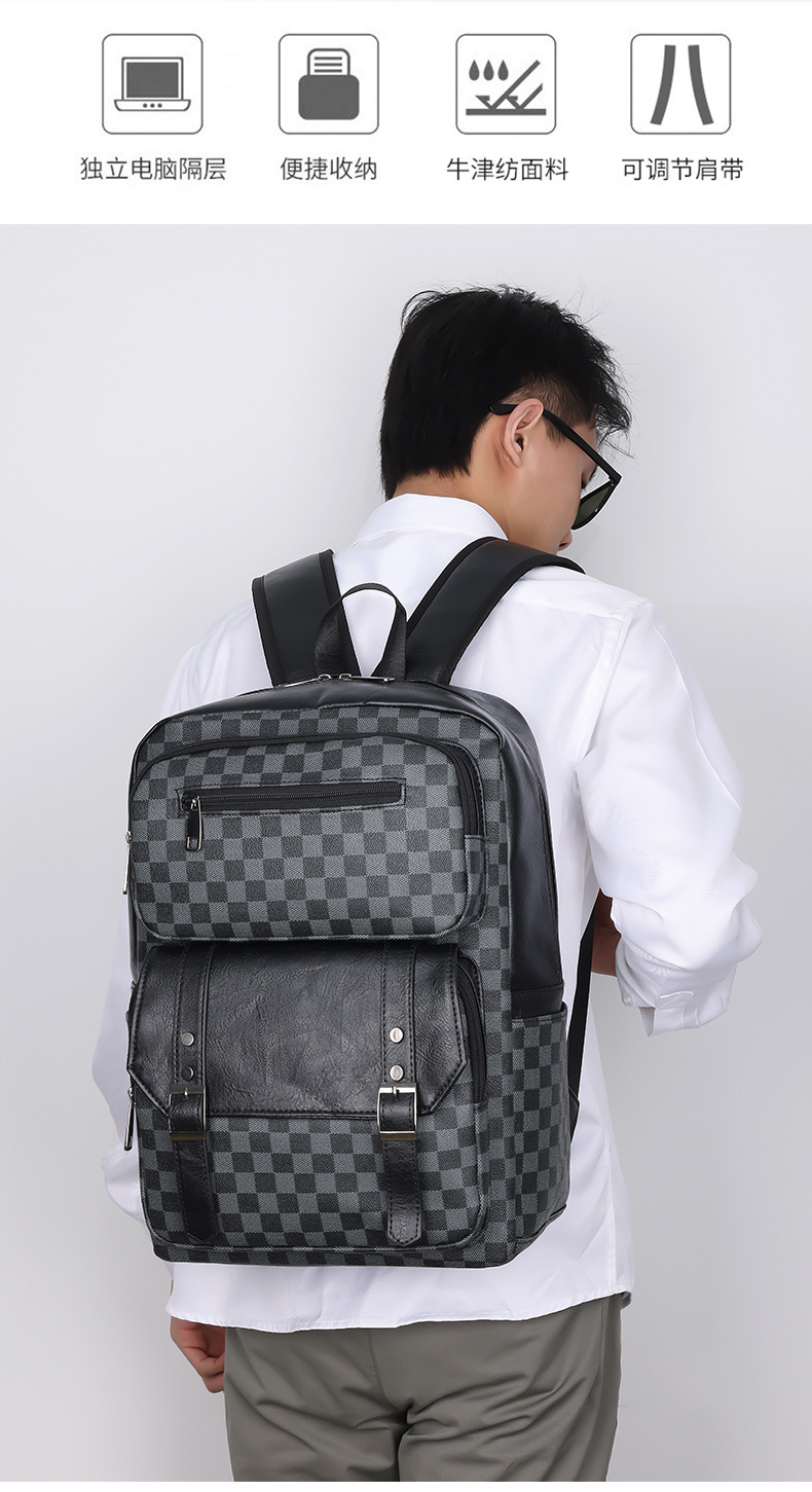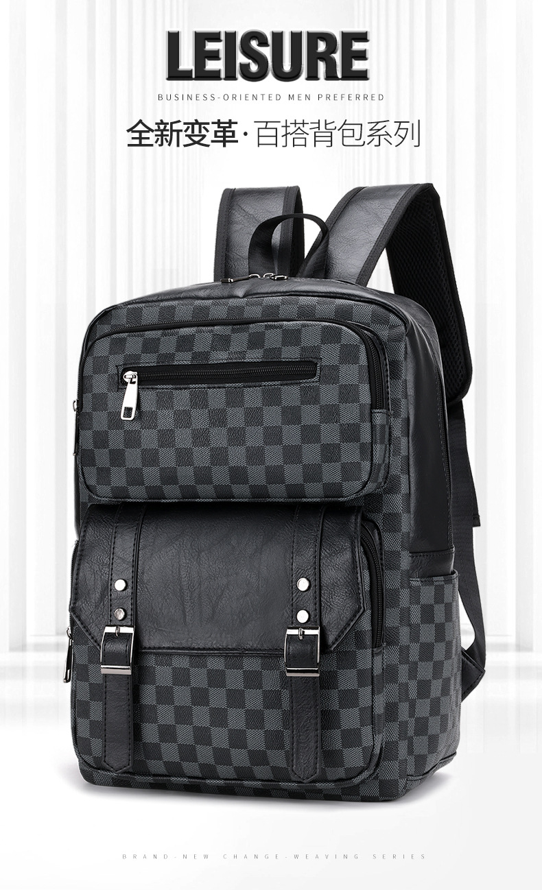새로운 한국 스타일 배낭 가죽 대용량 남성과 여성의 트렌디 한 격자 무늬 배낭 여행 가방 학생 학교 가방 컴퓨터 가방스토어 가기