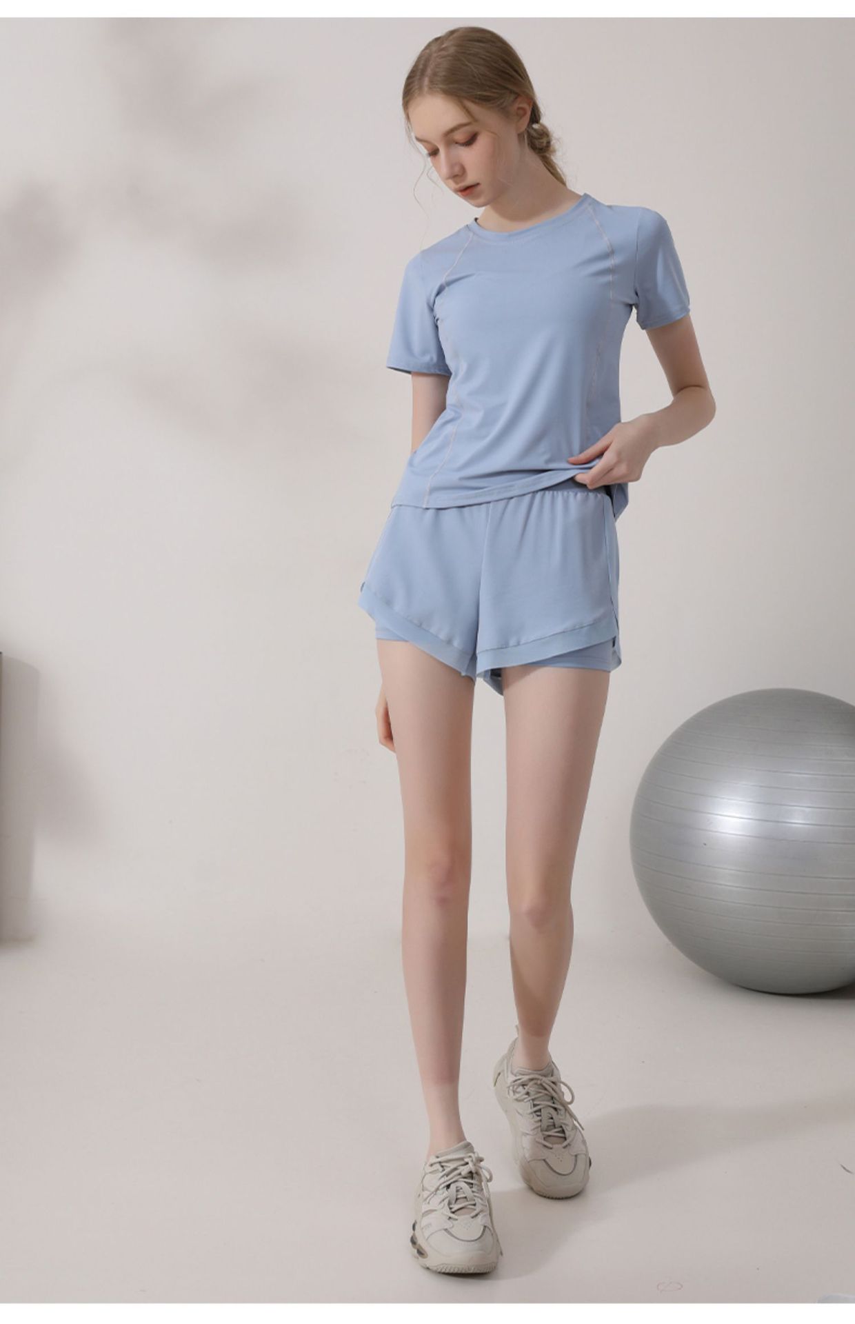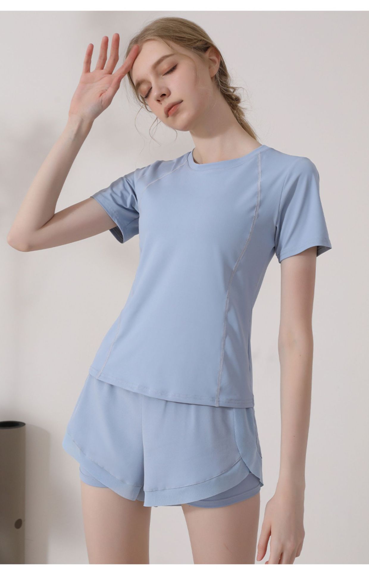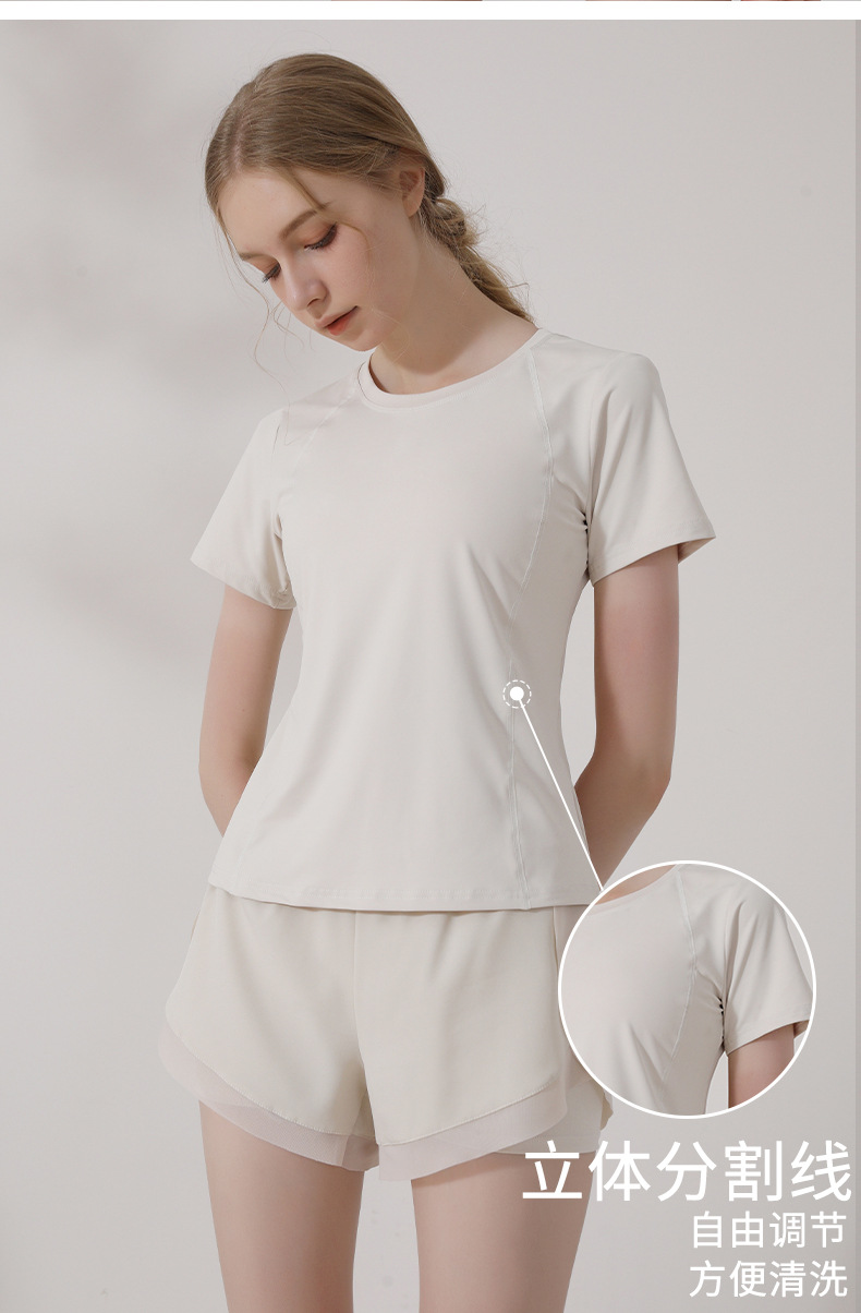 캐주얼 스포츠 반팔 티셔츠 여성용 여름 얇은 요가 의류 슬림핏 슬리밍 러닝 메쉬 스티칭 피트니스 탑스토어 가기