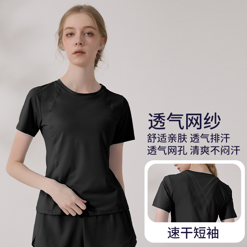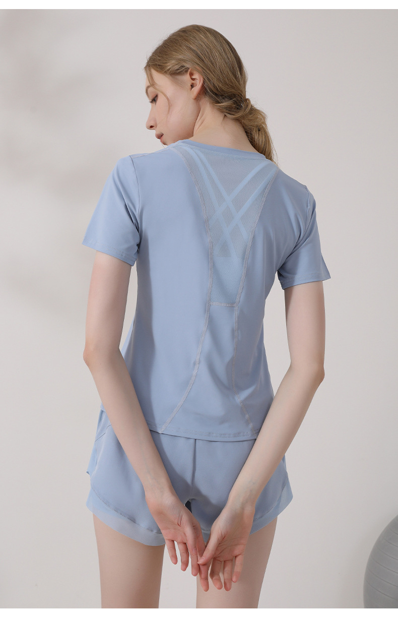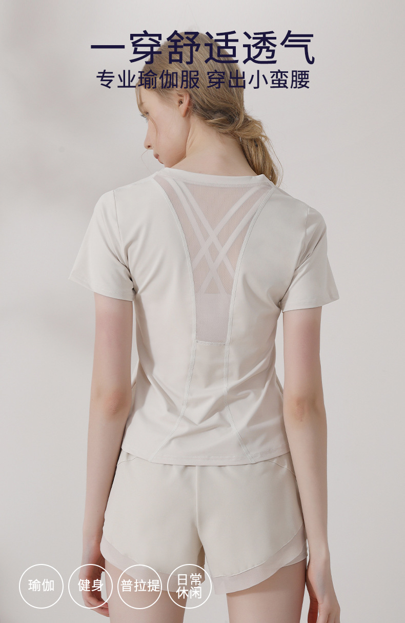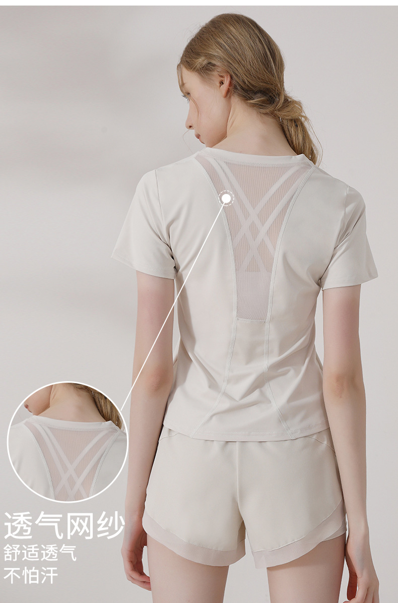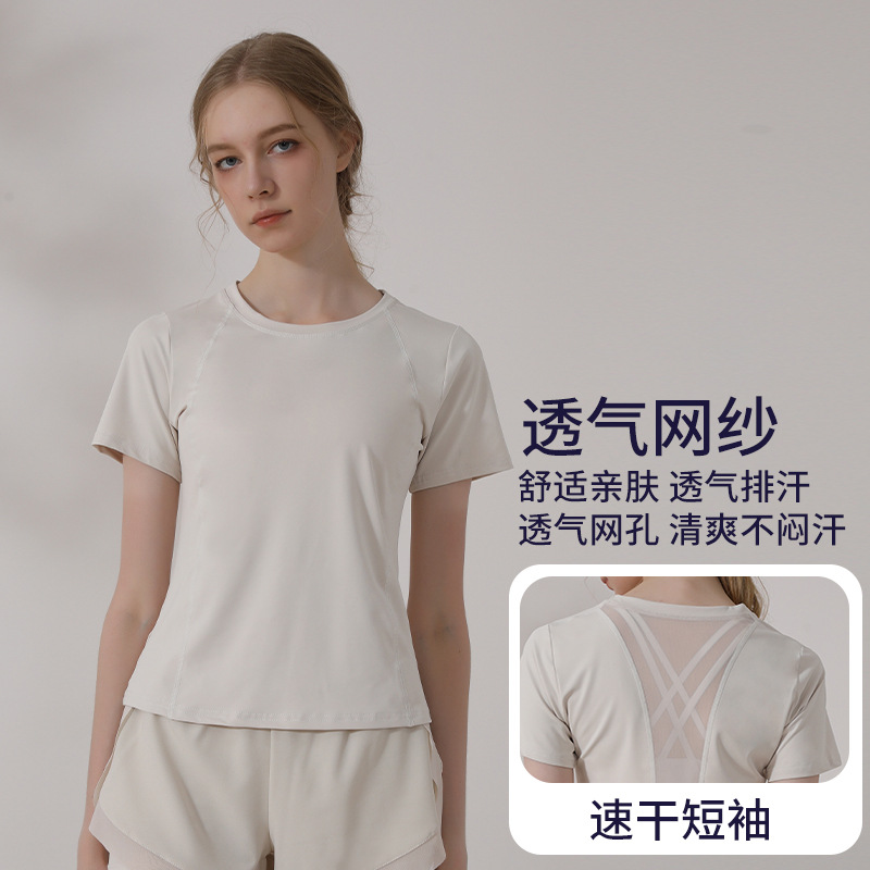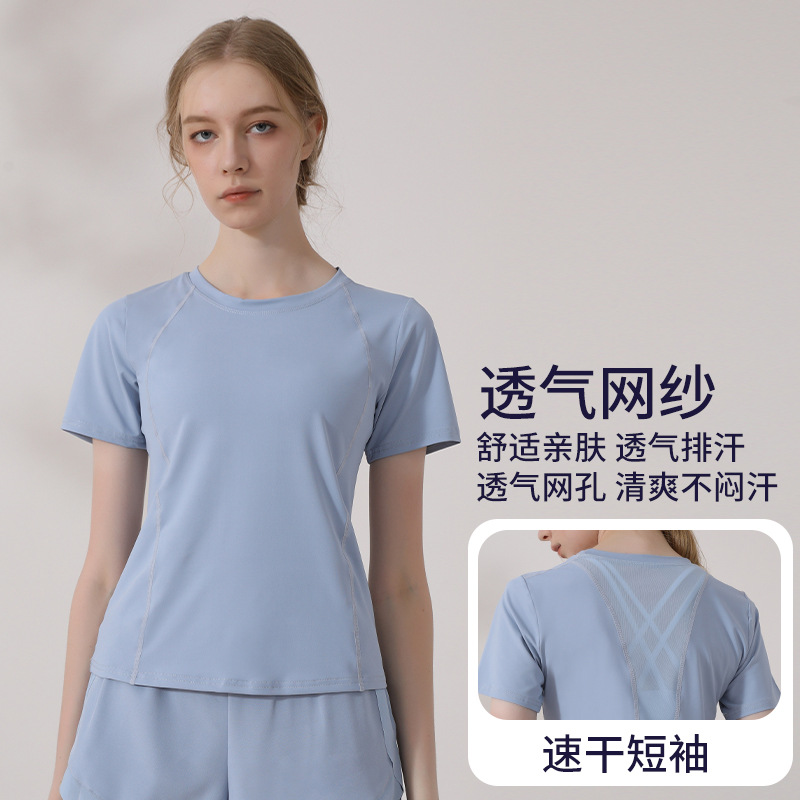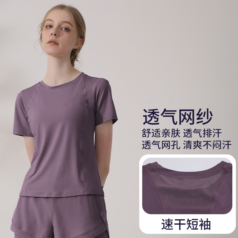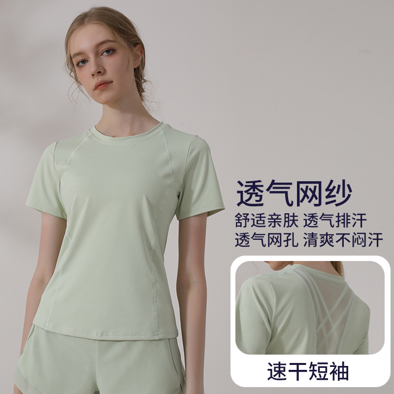캐주얼 스포츠 반팔 티셔츠 여성용 여름 얇은 요가 의류 슬림핏 슬리밍 러닝 메쉬 스티칭 피트니스 탑