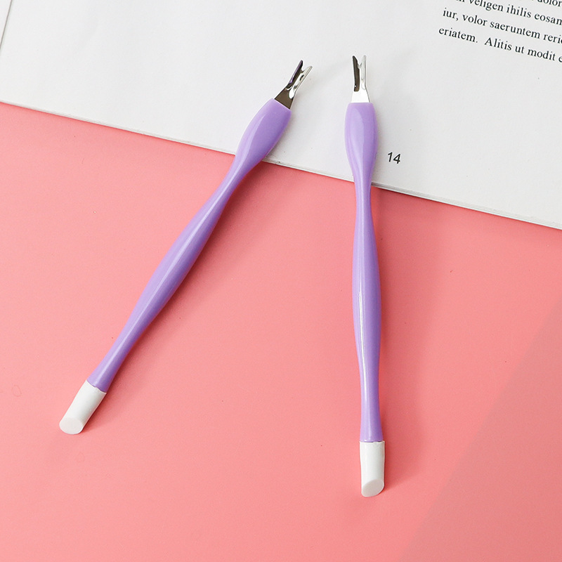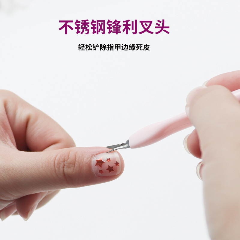 새로운 더블 헤드 데드 레더 포크 푸시 실리콘 스티커 프레스 로드 스테인레스 스틸 죽은 가죽 포크 삽 네일 케어 도구 도매