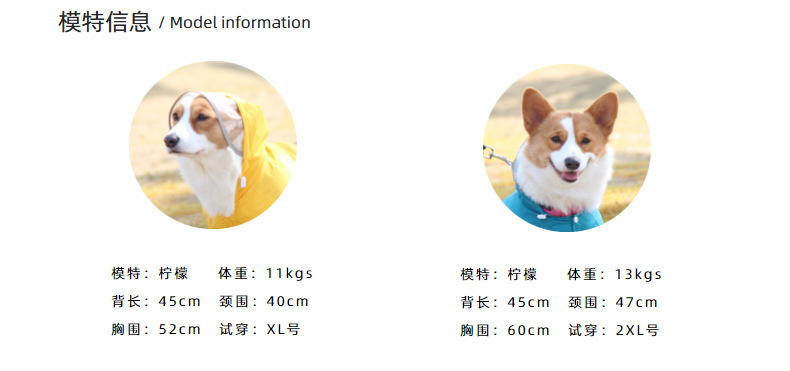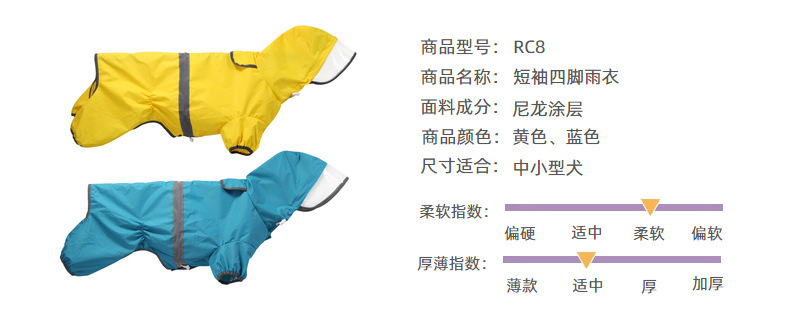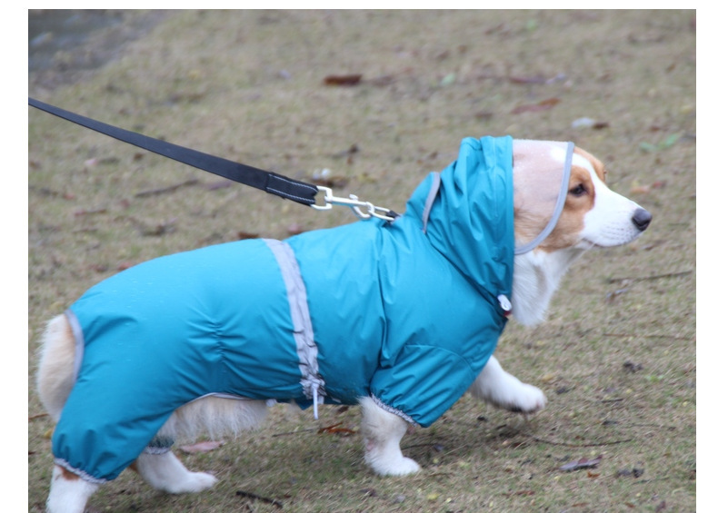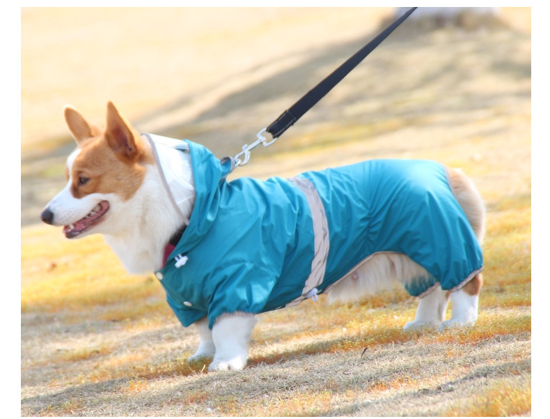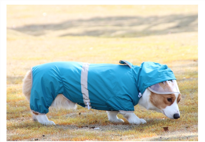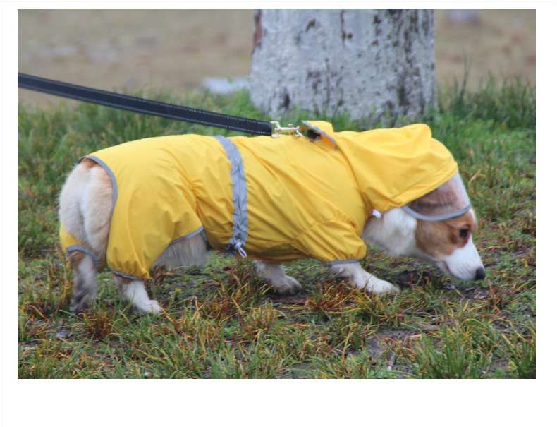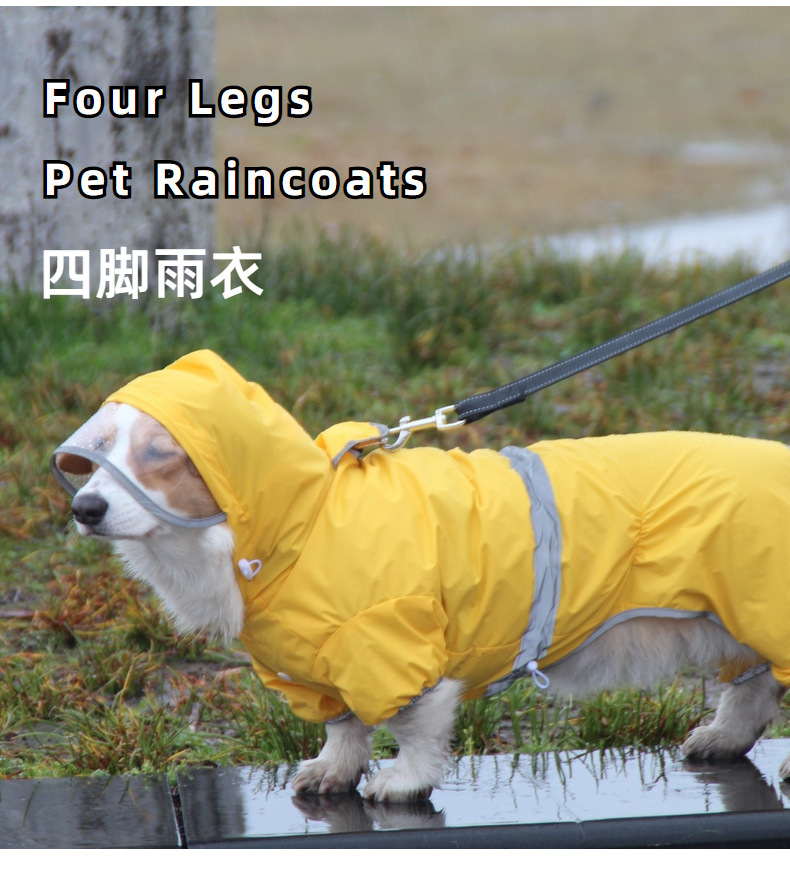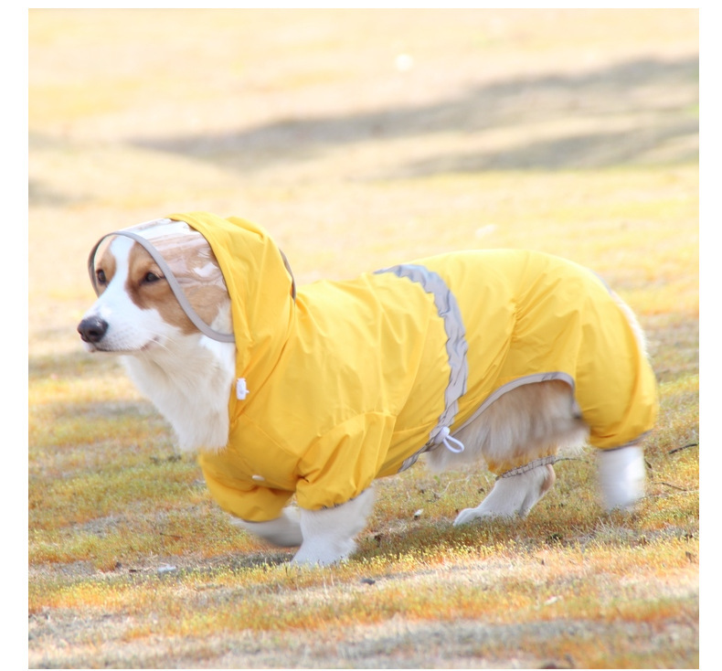 도매 노란색 애완 동물 코기 비옷 네 다리 반사 방수 개 의류 중형 개 비오는 날 개 산책 옷 재고스토어 가기