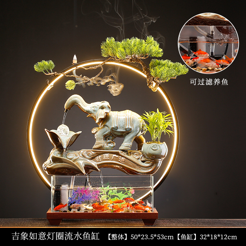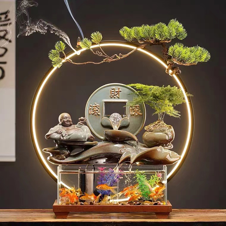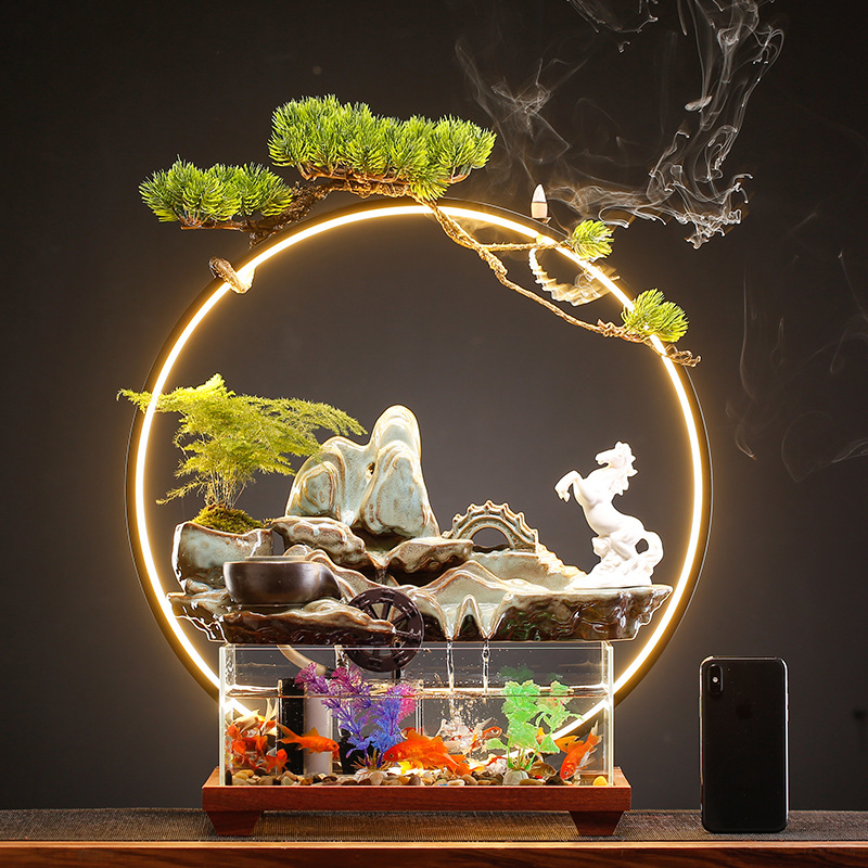 새로운 중국 스타일 높은 산과 흐르는 물 장식품 어항 rockery 행운 사무실 데스크탑 거실 집들이 새 집 개업 선물