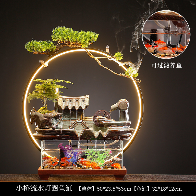 • 작은 다리 물 어항 램프 링 장식품 (필터 박스 + 수초 + 비 플라워 스톤)