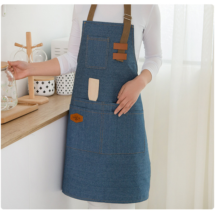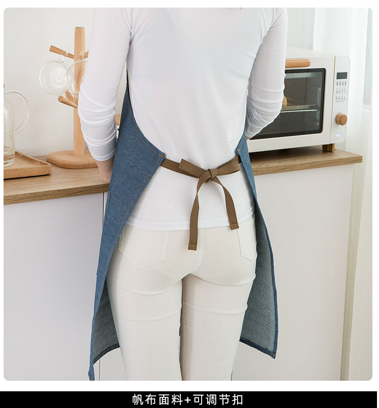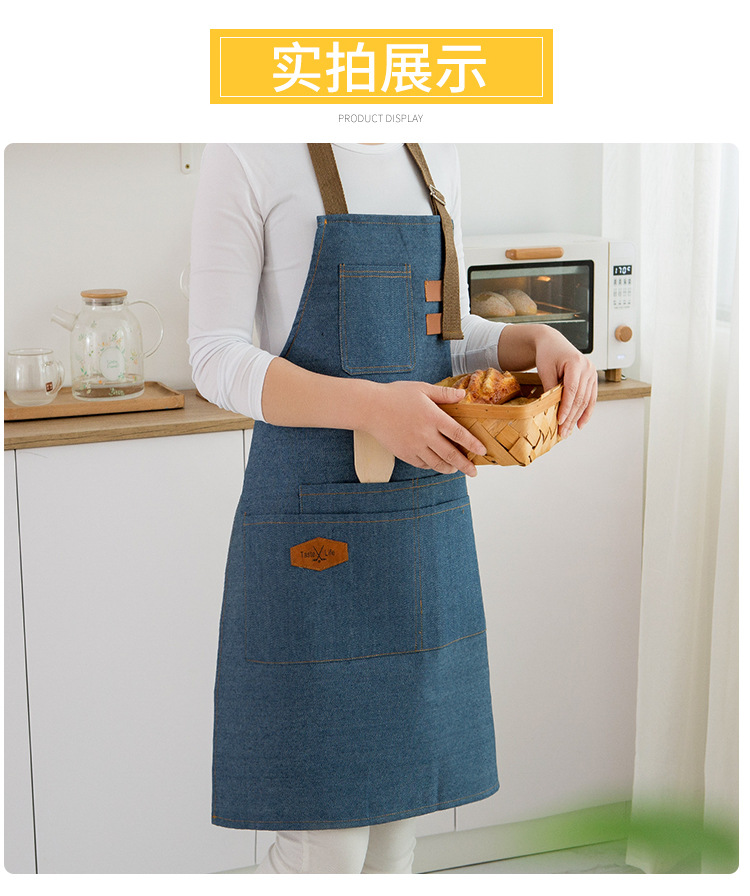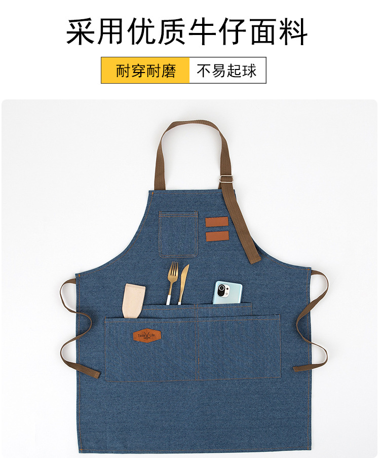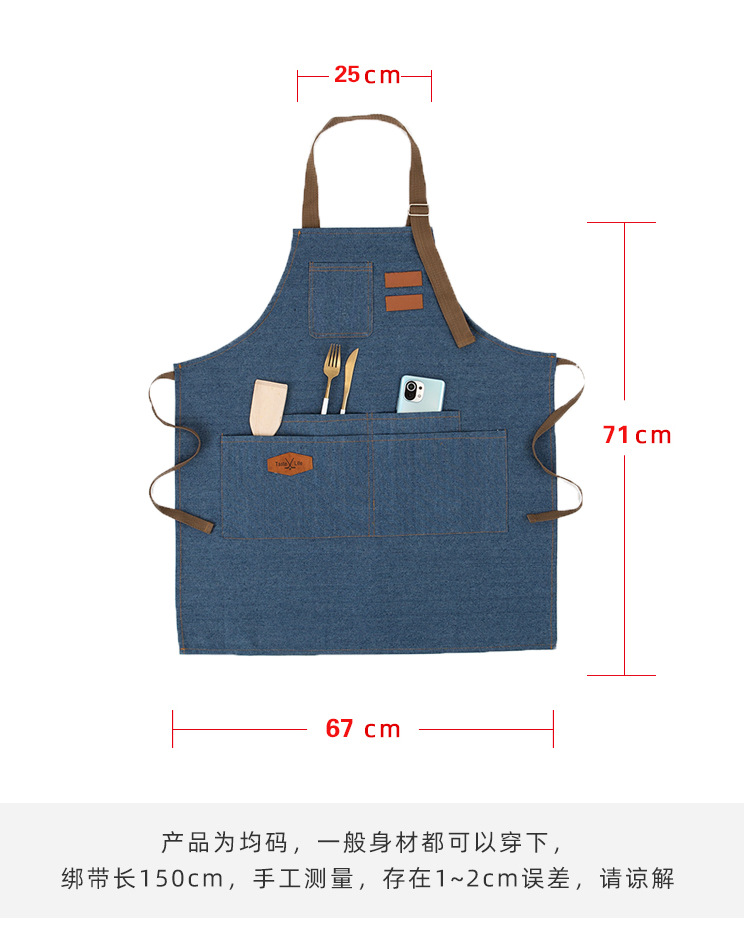 한국 패션 데님 앞치마 바리 스타 우유 차 가게 레스토랑 작업 옷 이발사 그림 인쇄 및 제조 로고스토어 가기
