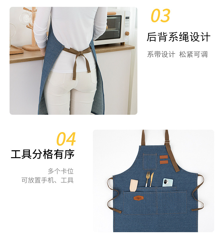 한국 패션 데님 앞치마 바리 스타 우유 차 가게 레스토랑 작업 옷 이발사 그림 인쇄 및 제조 로고