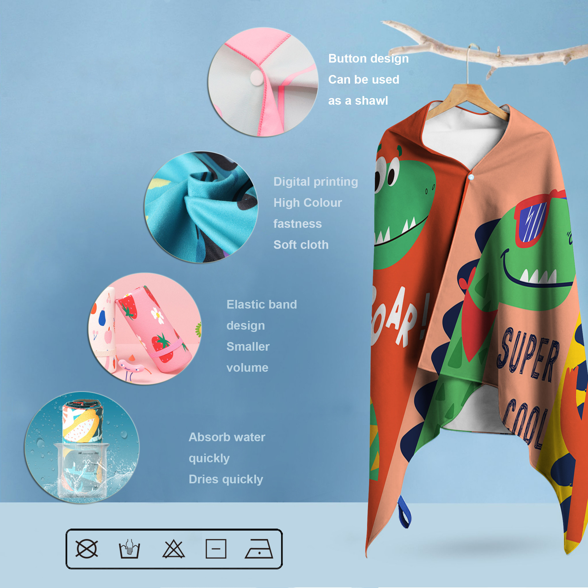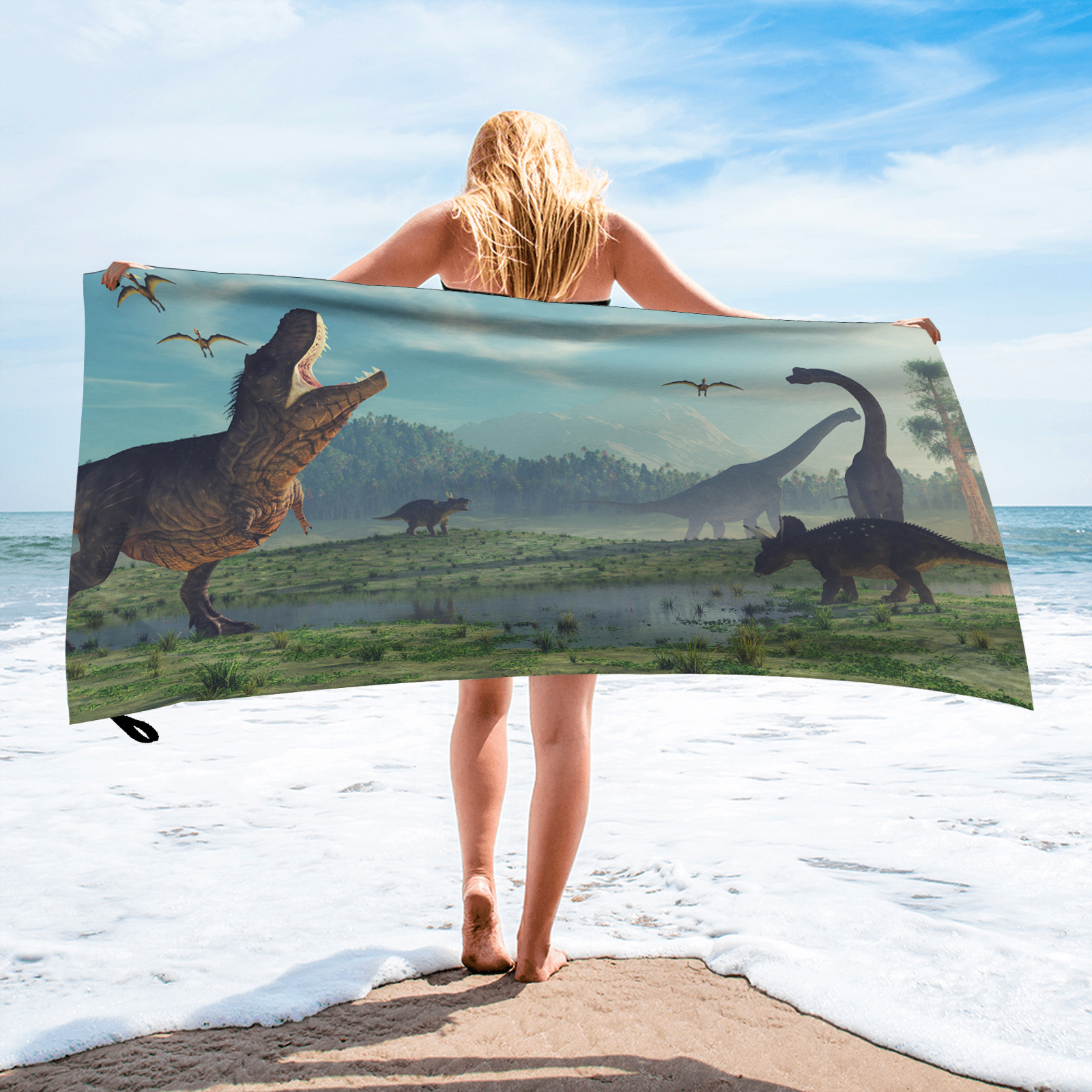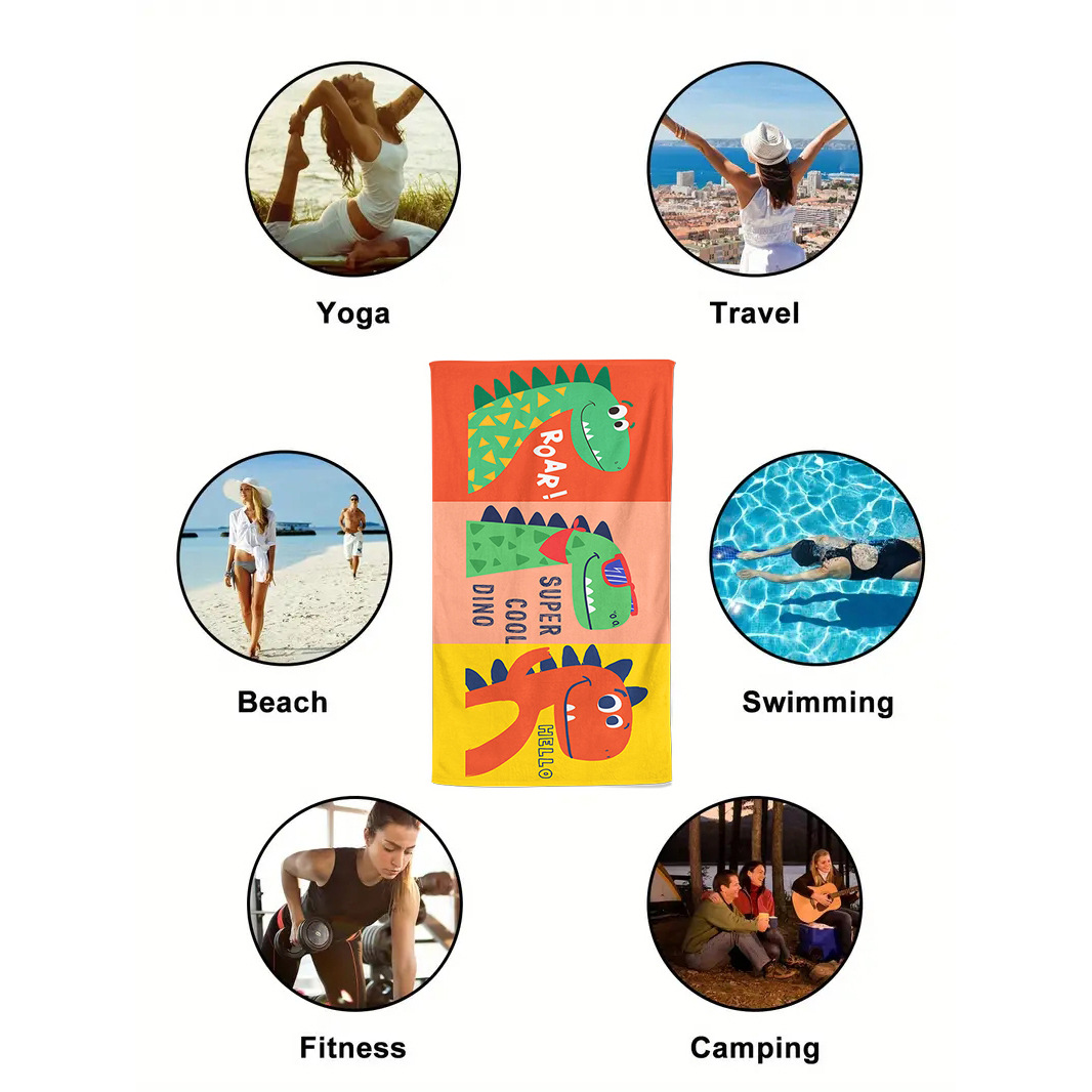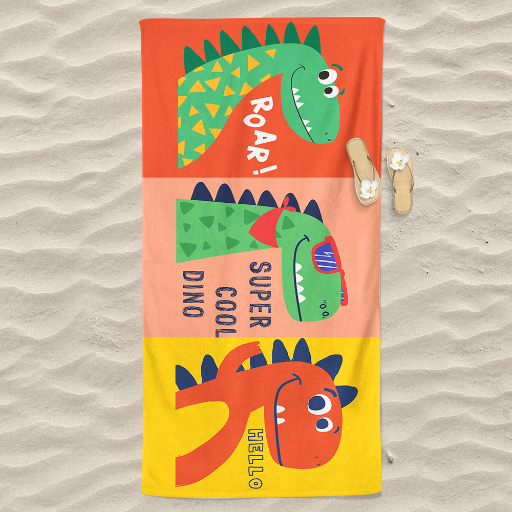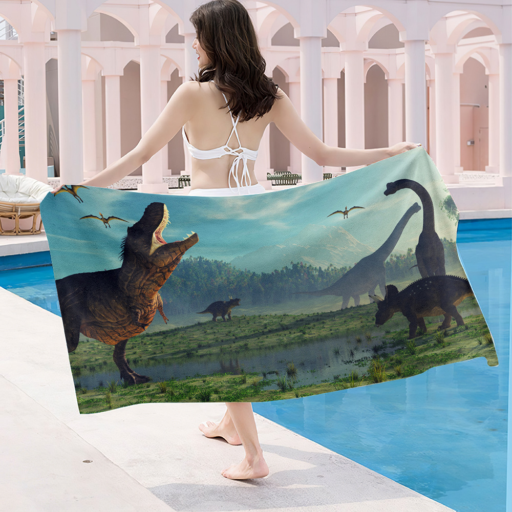 크로스보더 TEMU 공급 극세사 만화 공룡 컬러 3D 인쇄 속건 비치 타월 목욕 타월 랩 타월 목욕 타월