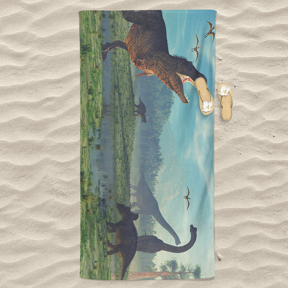 크로스보더 TEMU 공급 극세사 만화 공룡 컬러 3D 인쇄 속건 비치 타월 목욕 타월 랩 타월 목욕 타월스토어 가기