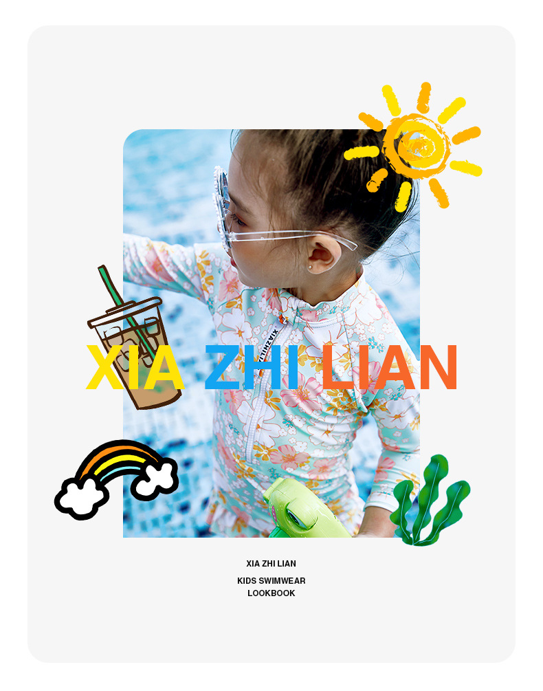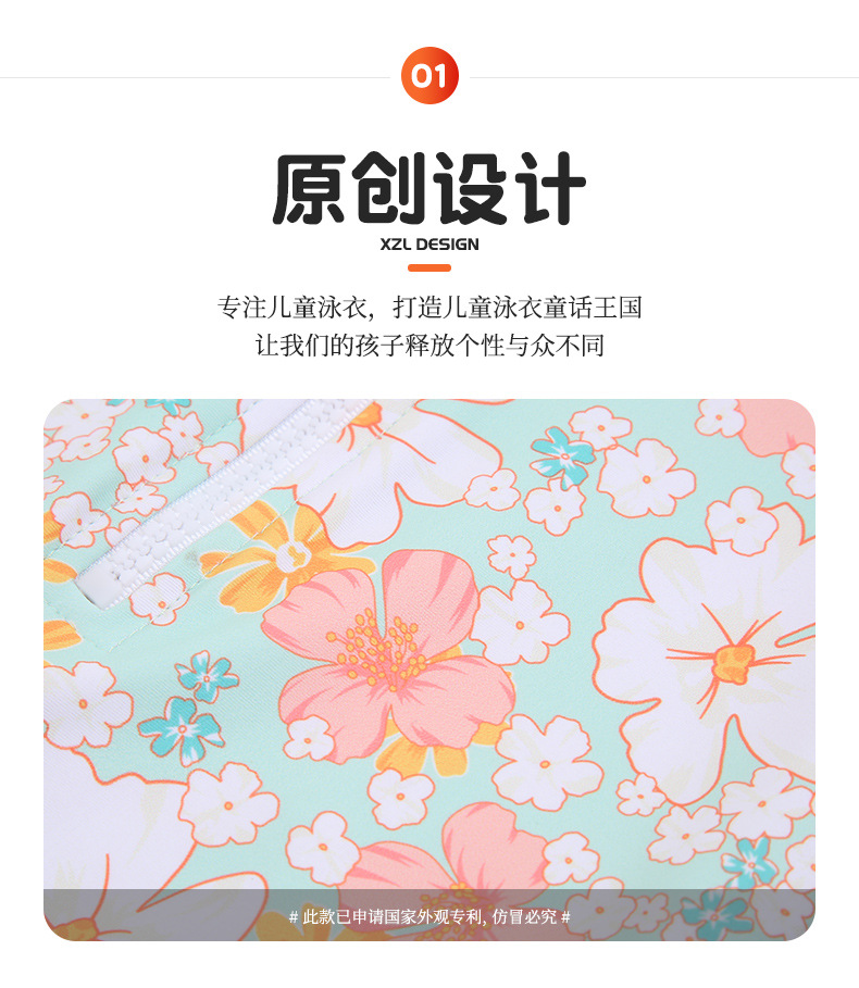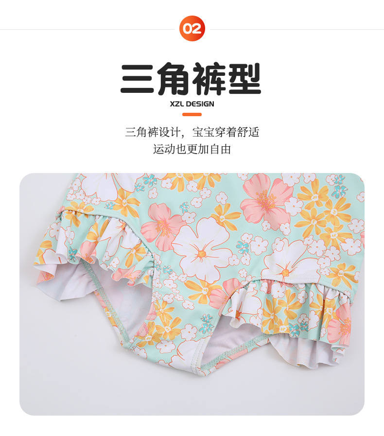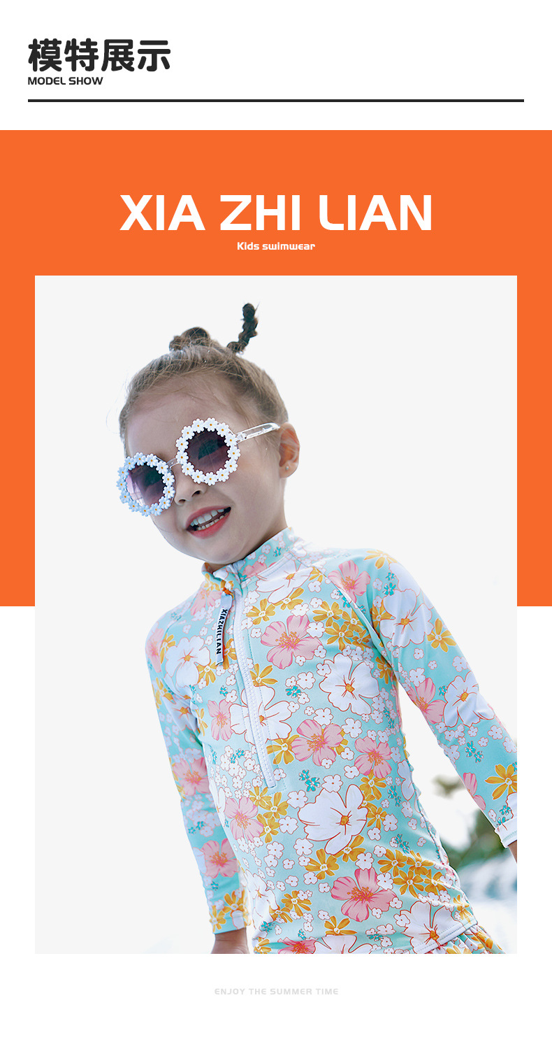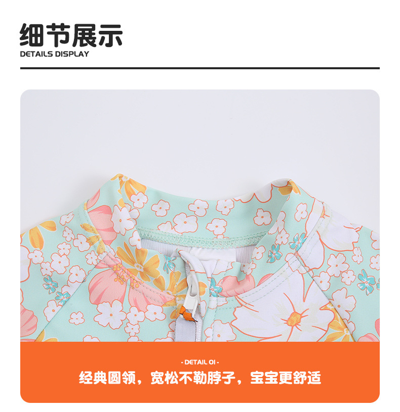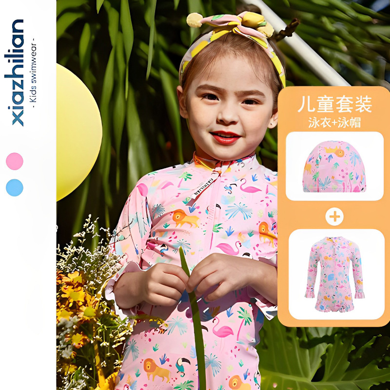 韩版女童花朵泳衣中小童连体泳衣可爱宝宝公主长袖沙滩防晒冲浪服