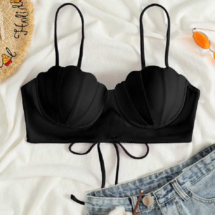 대외 무역 bikini2025 신제품 솔리드 컬러 쉘 언더와이어 가슴 패드 수영복 유럽과 미국의 섹시한 비키니 수영복 탑