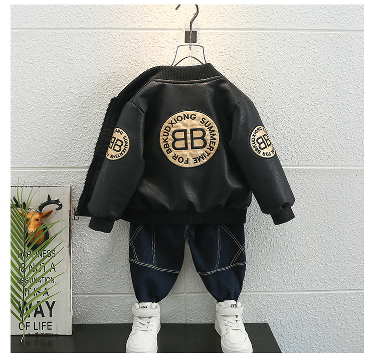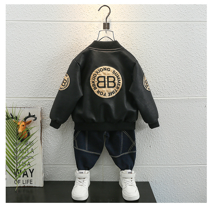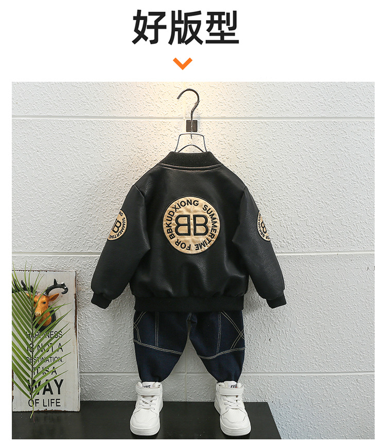 소년 가죽 옷 봄과 가을 대외 무역 새로운 유럽과 미국 어린이 PU 가죽 옷 서양식 남자의 아기 워싱 가죽 자켓 코트스토어 가기