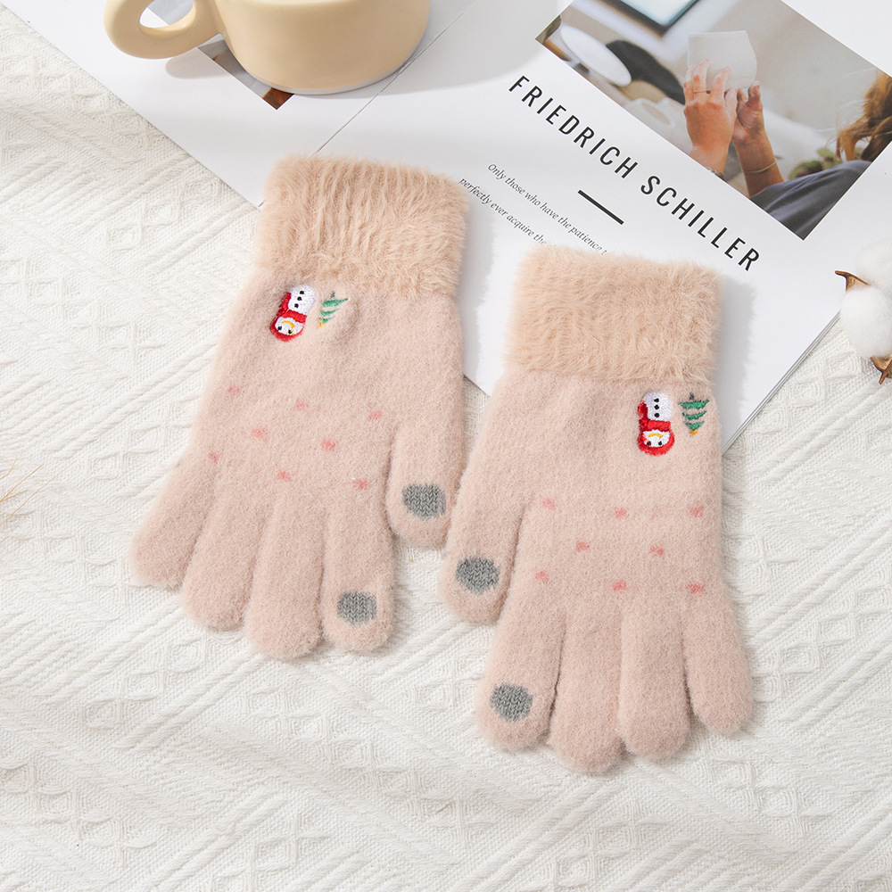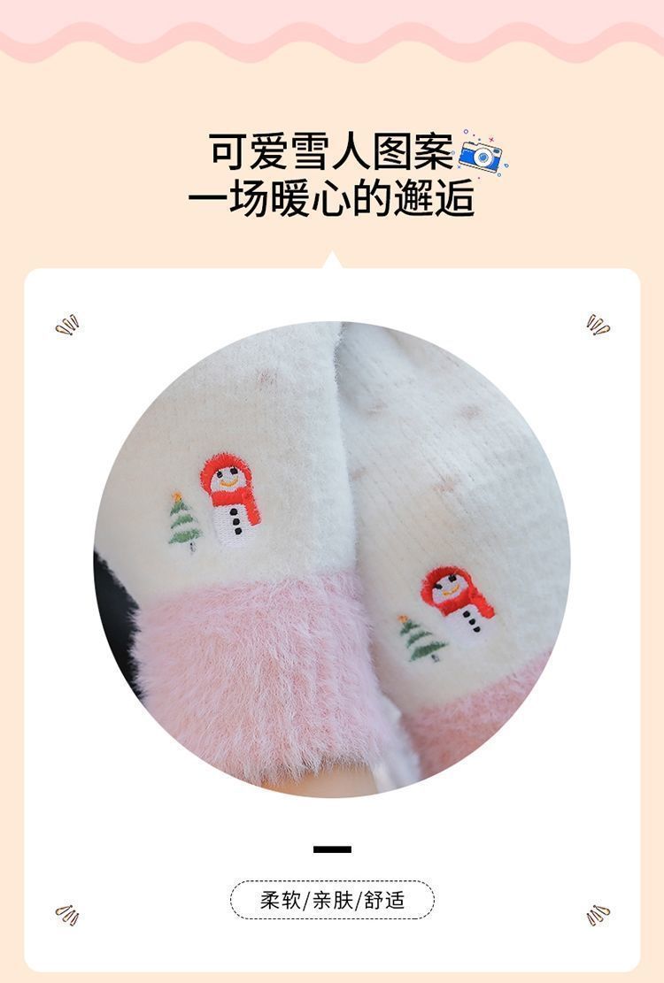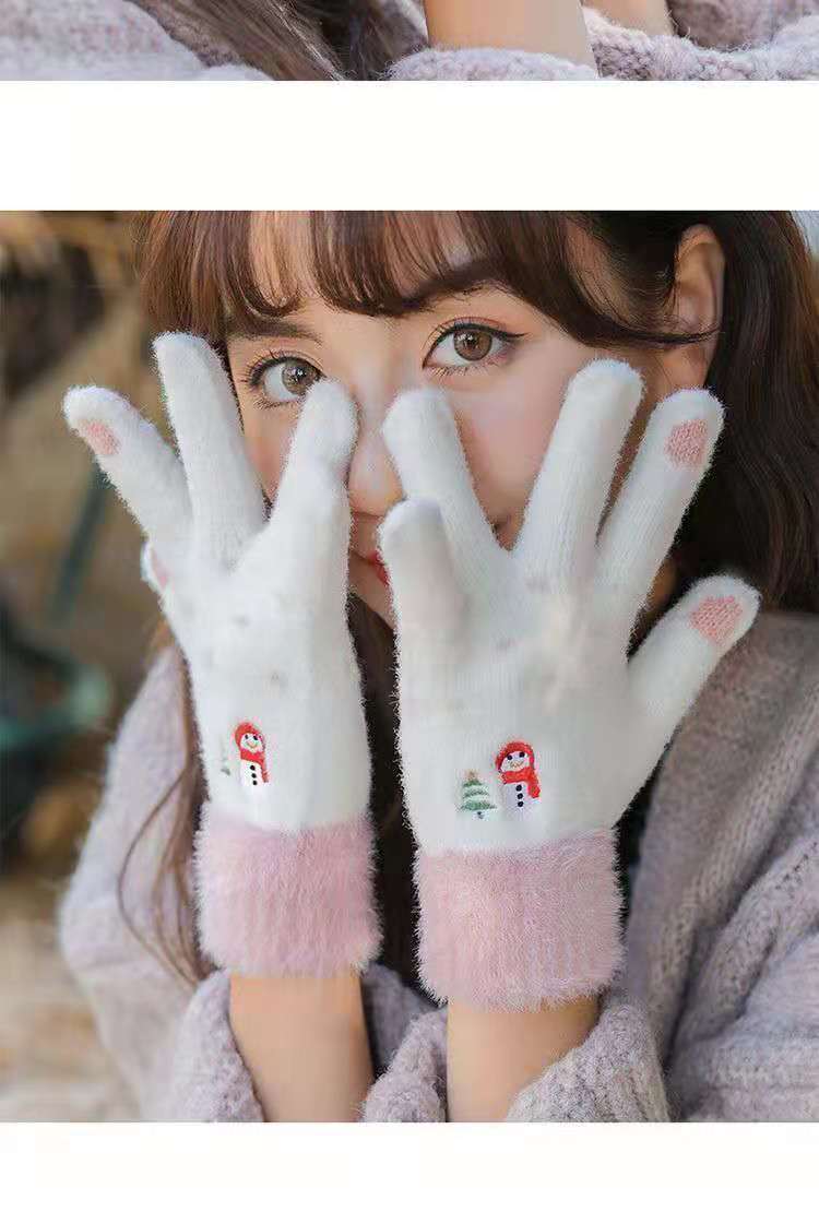 여학생용 장갑, 한국 스타일, 귀여운 겨울용 다섯 손가락 장갑, 보온성, 플러스 벨벳, 두꺼운 털, 만화 플립 커버, 자전거 타기용 장갑, 눈사람 디자인스토어 가기